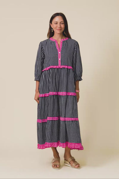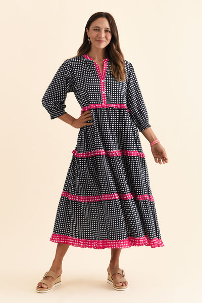 Kesia Navy Spot Cotton Tier Dress