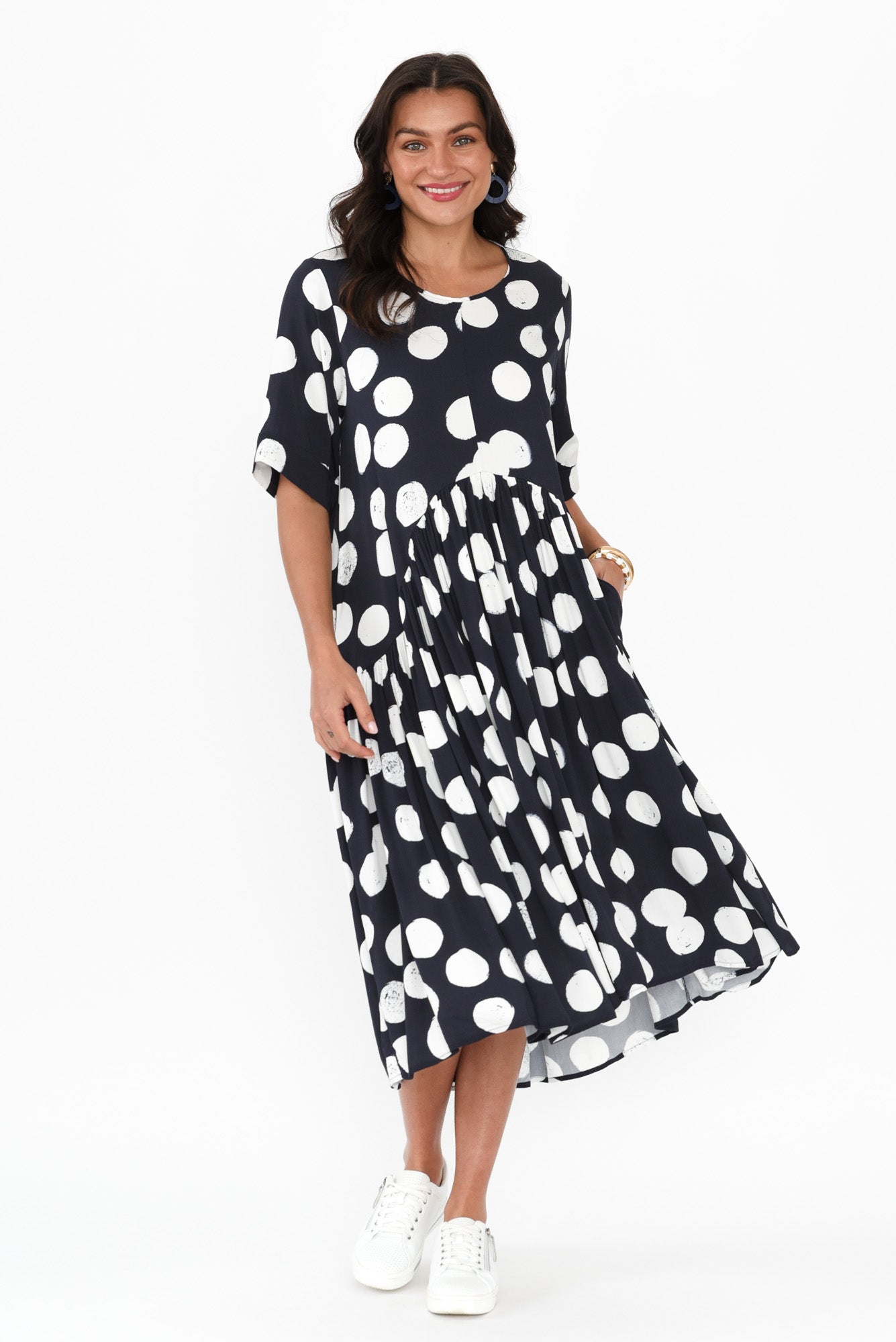 KIANA NAVY SPOT PEAK DRESS