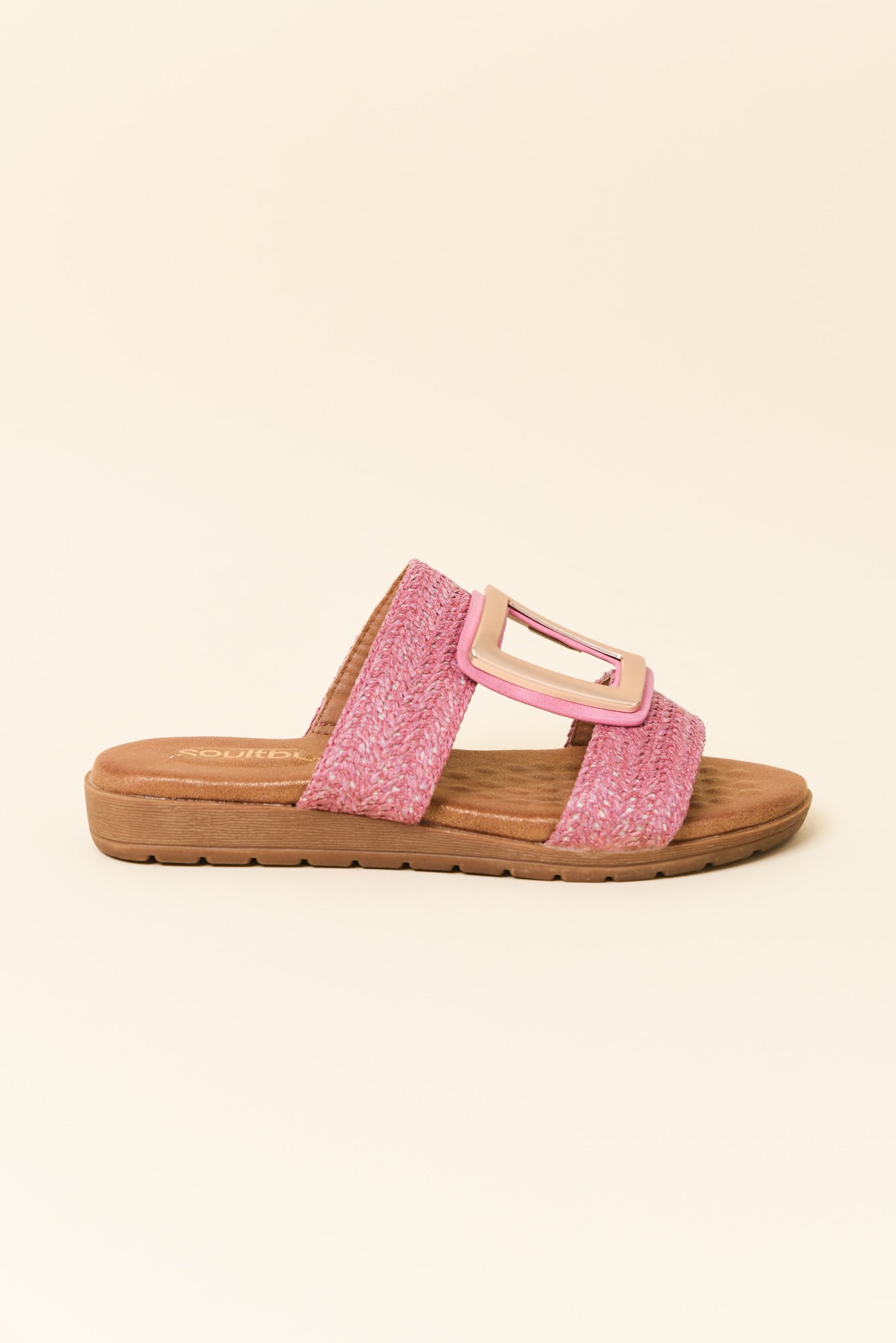 KIMBERLEY PINK RAFFIA BUCKLE SLIDE