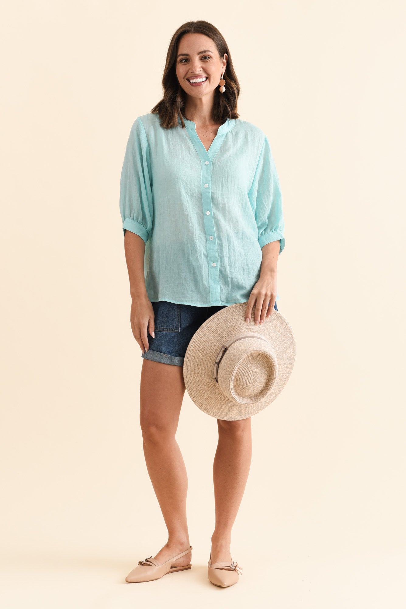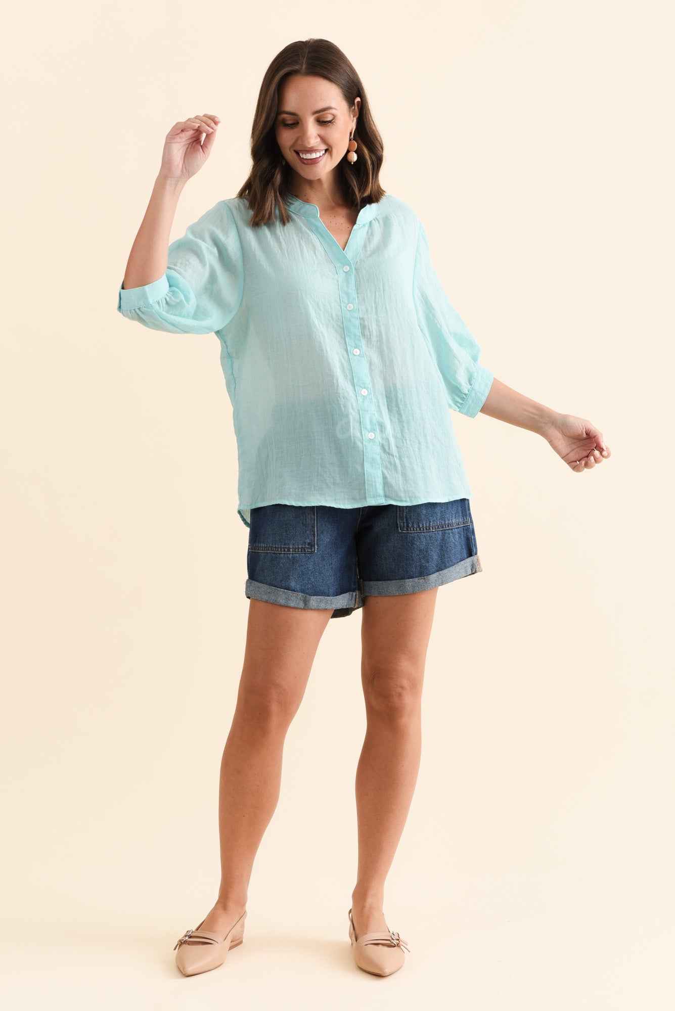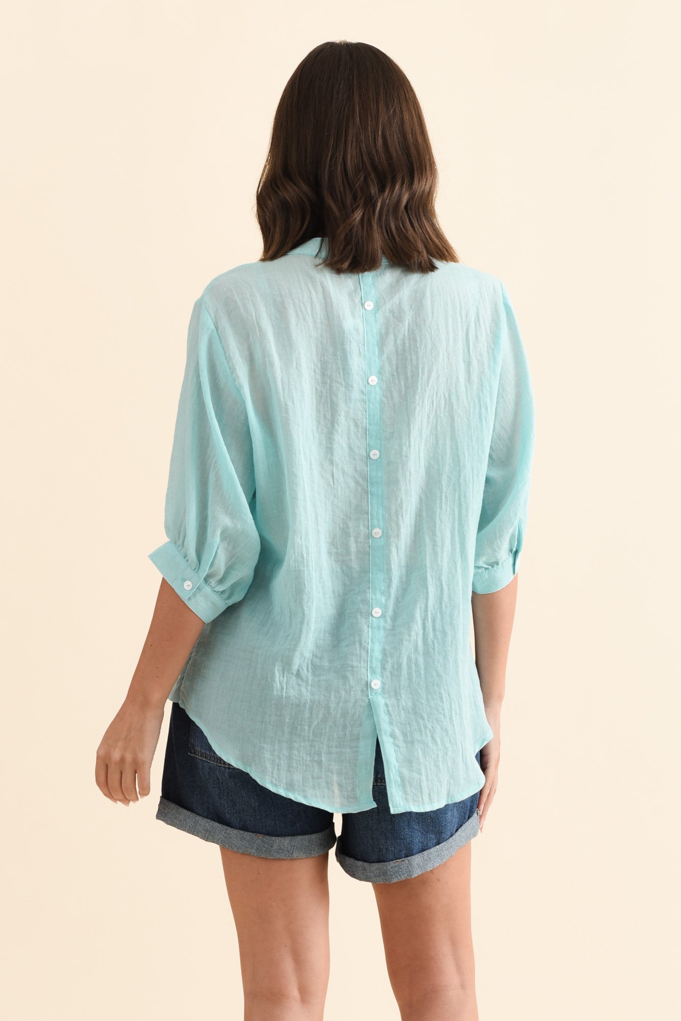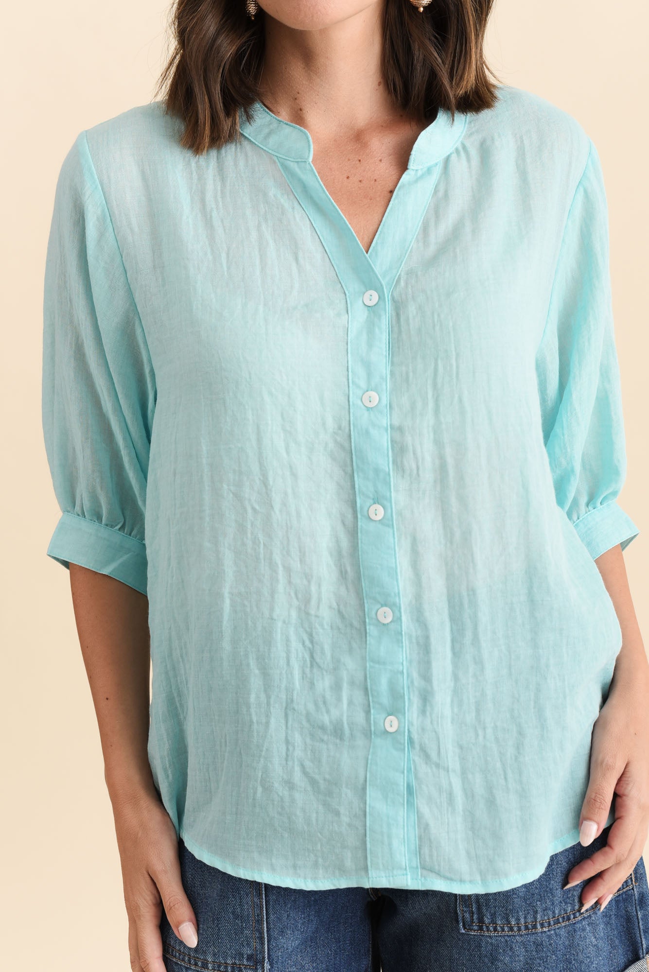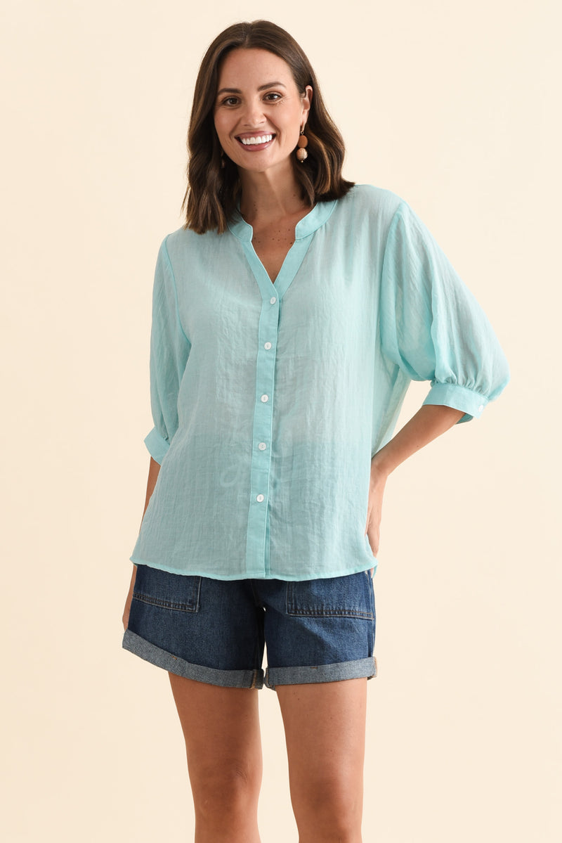 Kira Aqua Cotton 3/4 Sleeved Shirt