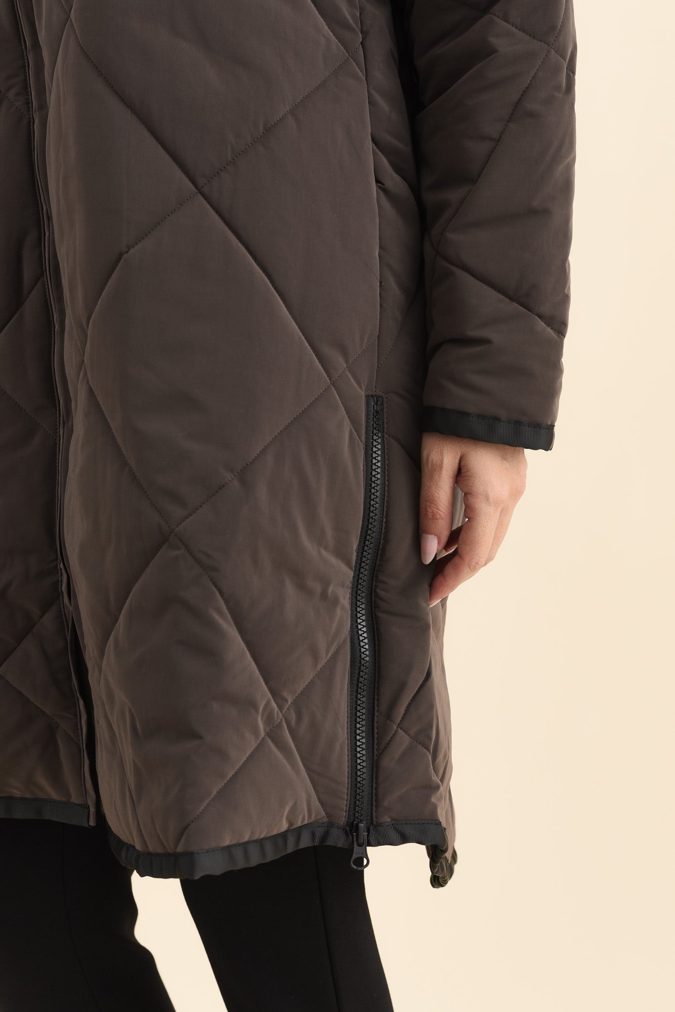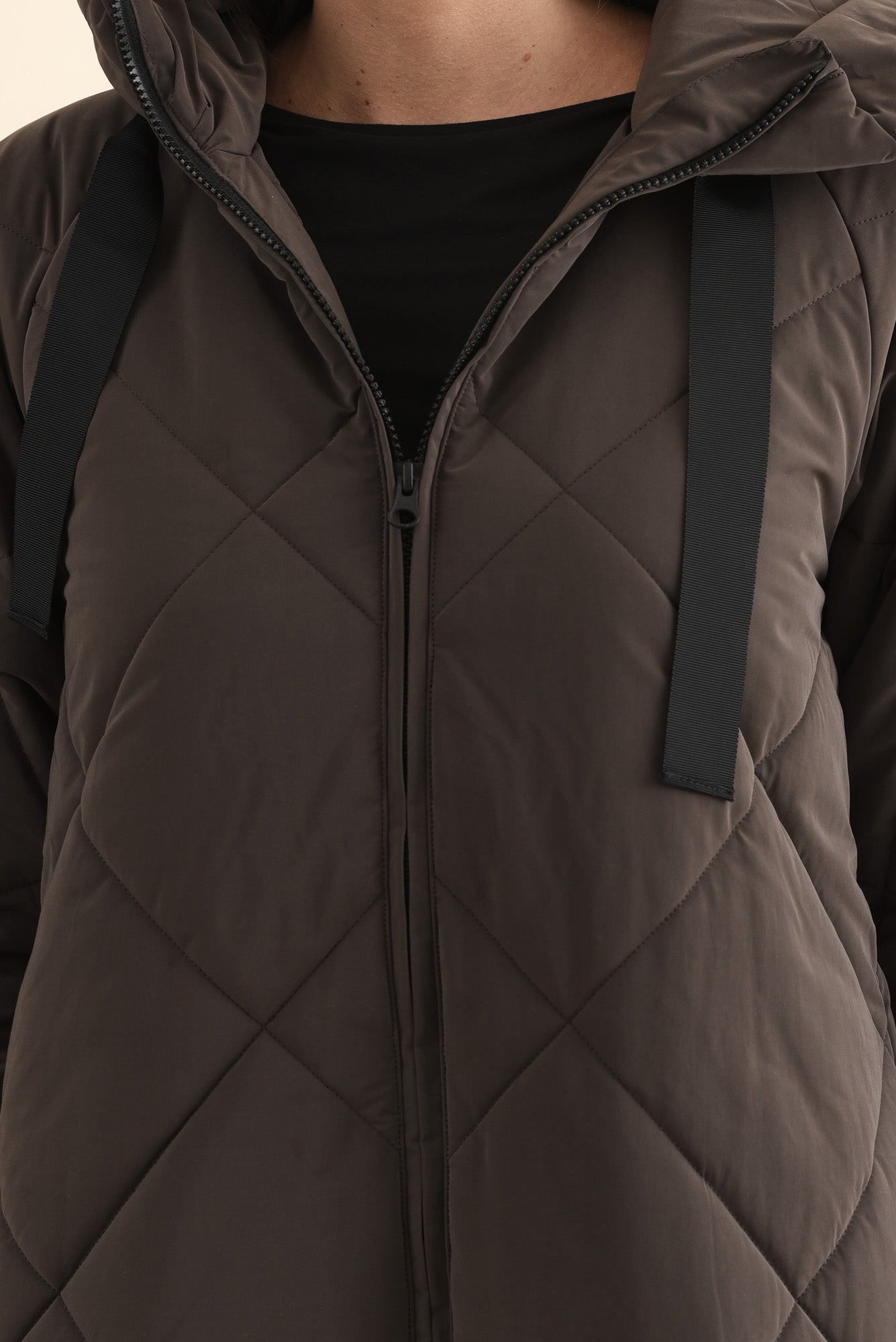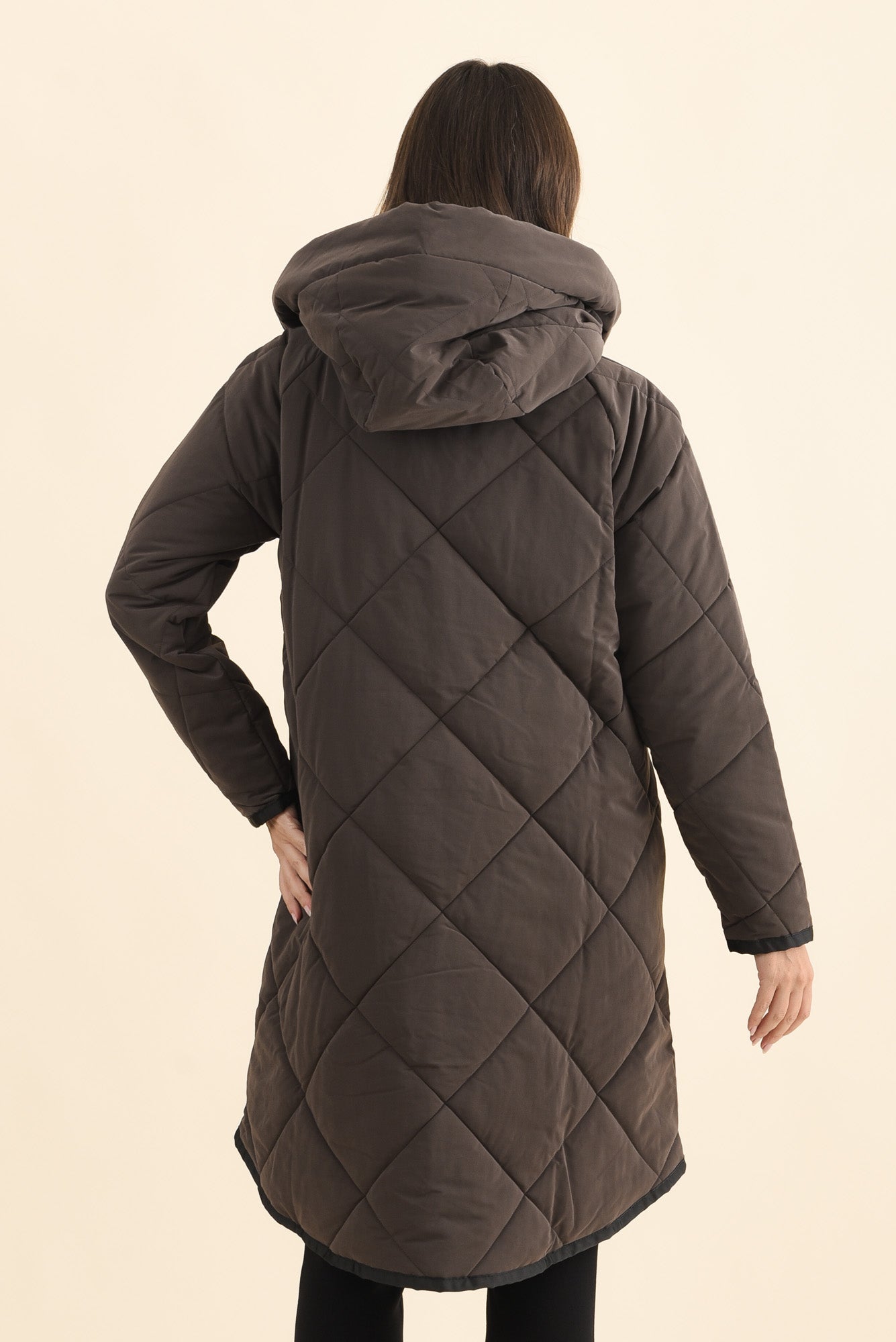 KOAMI CHOCOLATE QUILTED HOODED COAT