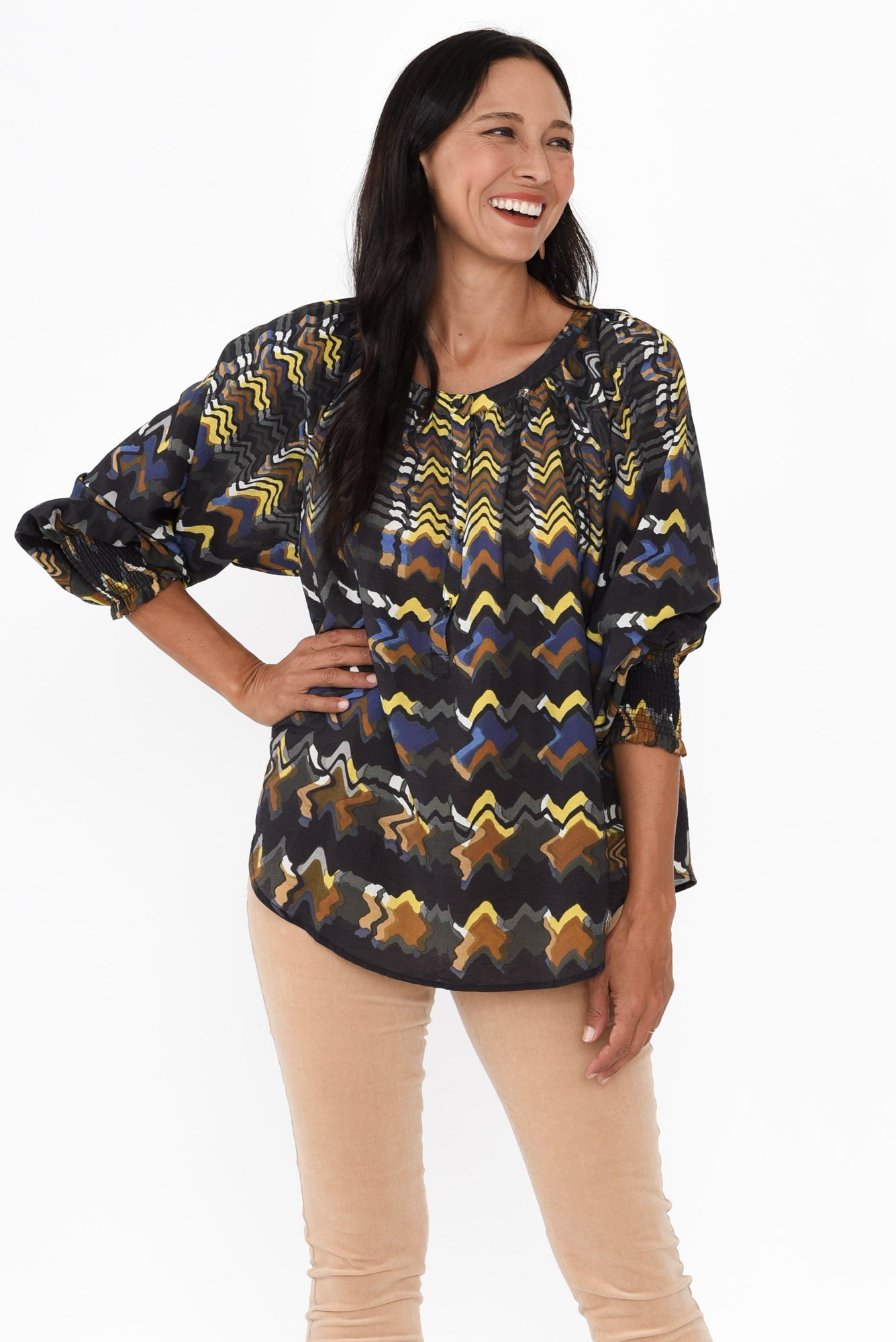 Kolide Navy Abstract Gathered Blouse