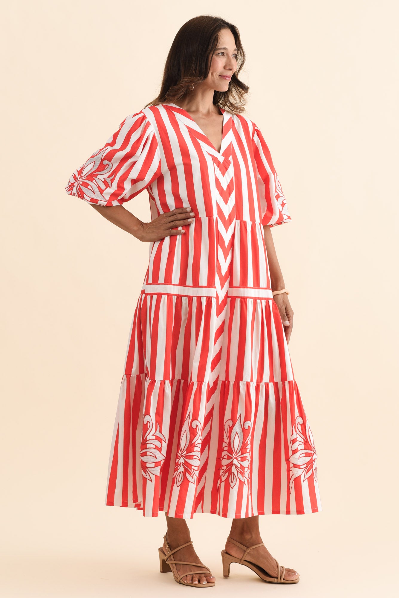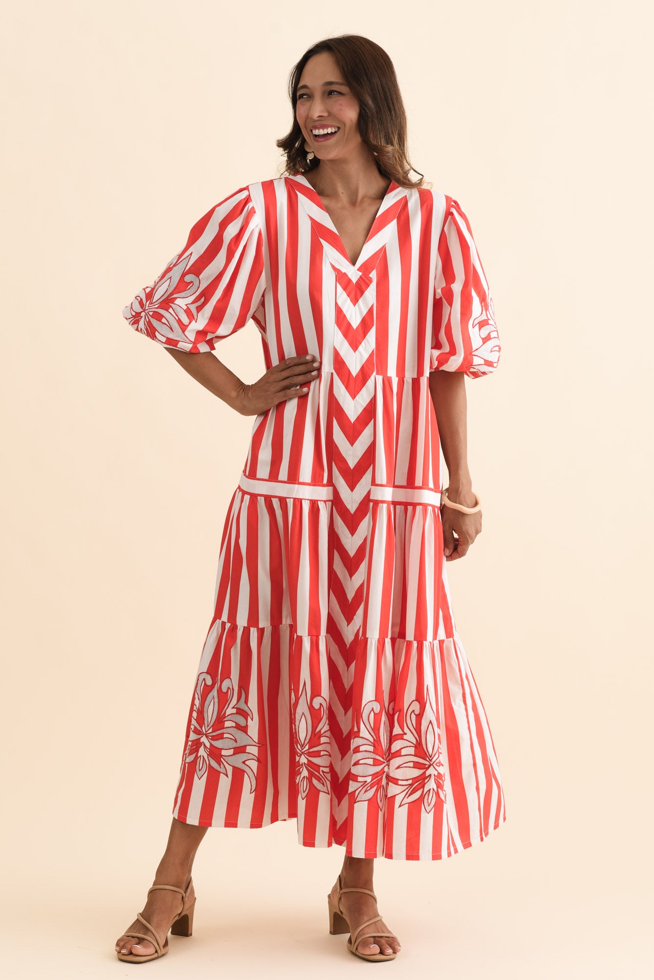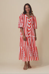 Kora Red Stripe Cotton Poplin Tie Dress