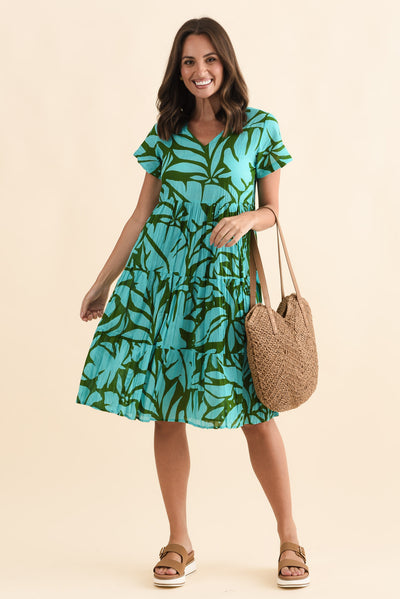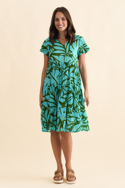 Lania Aqua Botanical Crinkle Cotton Dress