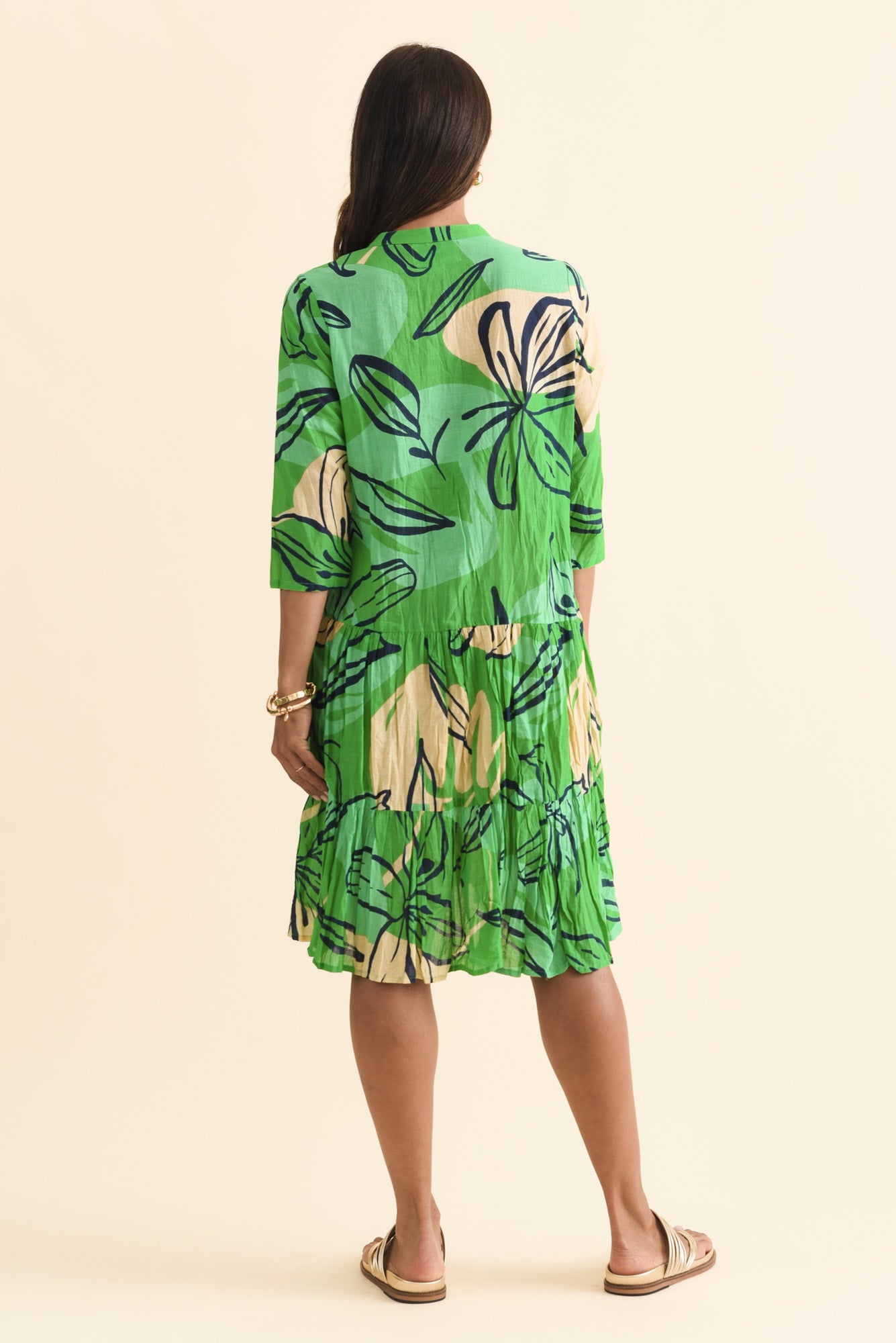 LARISSA GREEN LILY COTTON PLEATED DRESS