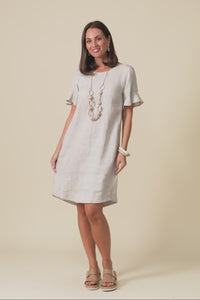 Lesley Beige Linen Flutter Sleeve Dress