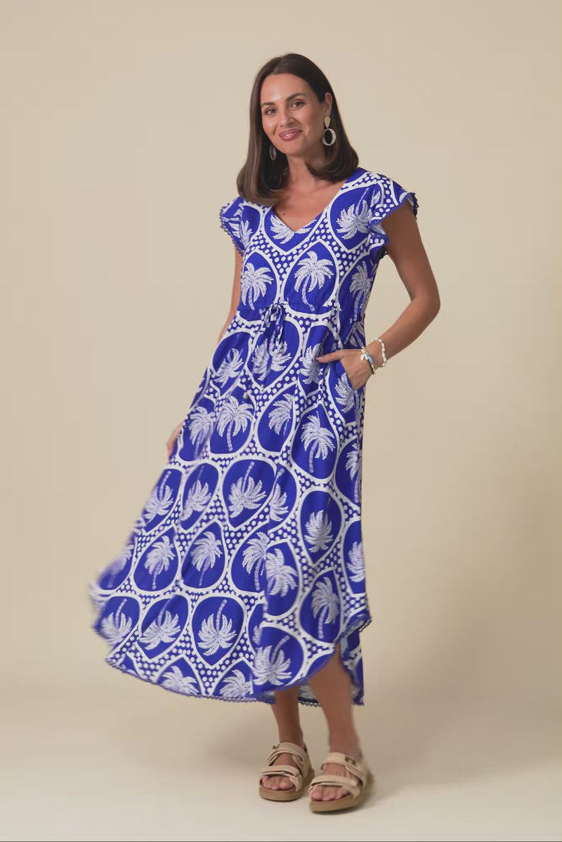 Libby Blue Palm Midi Dress