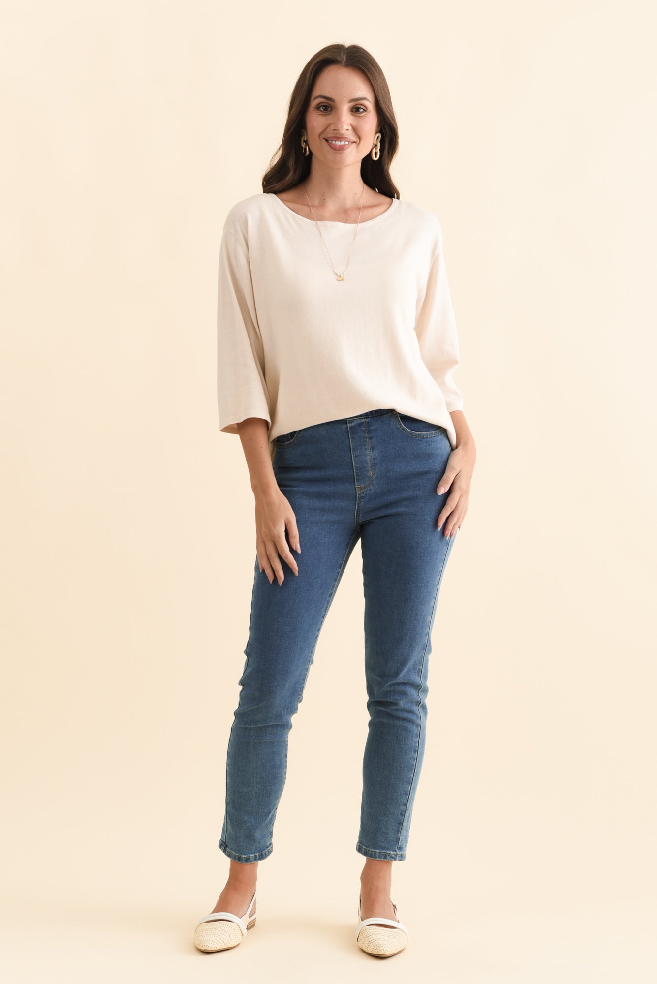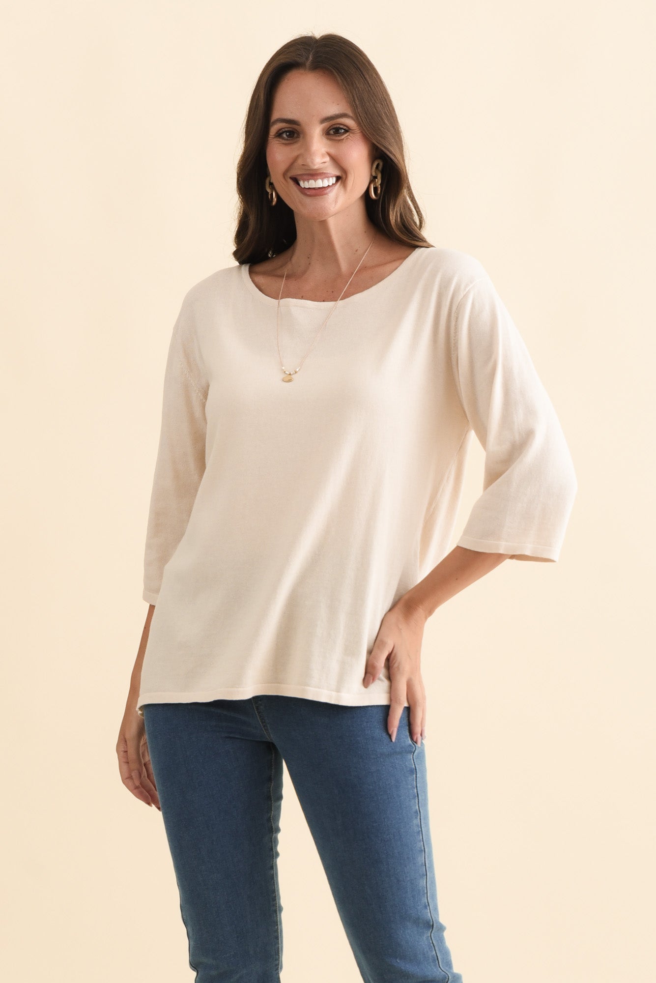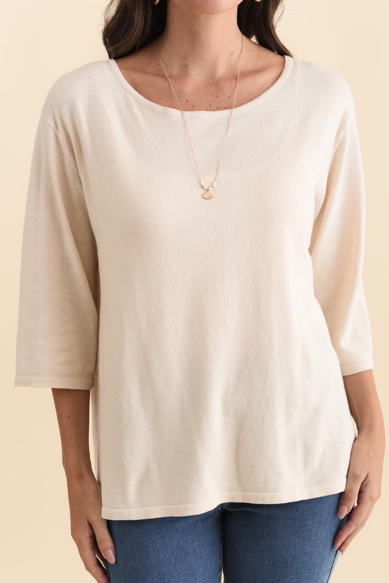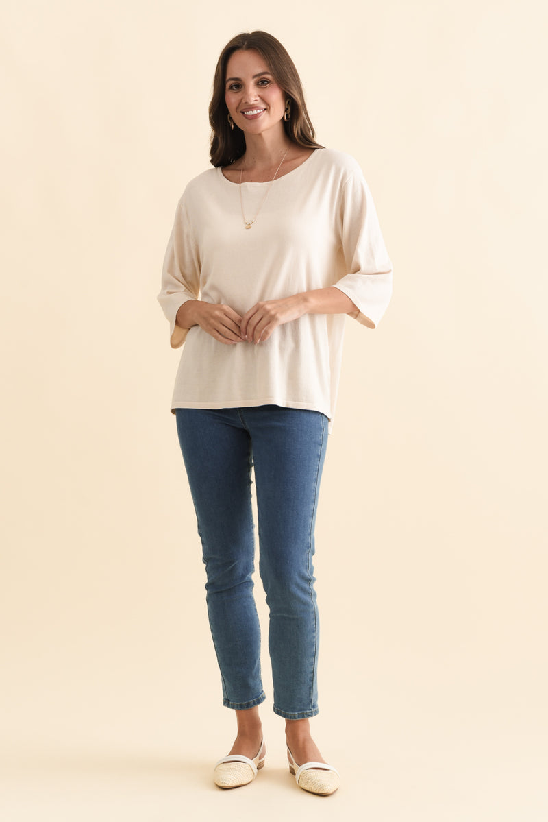 Liberty Beige Cotton 3/4 Sleeve Top