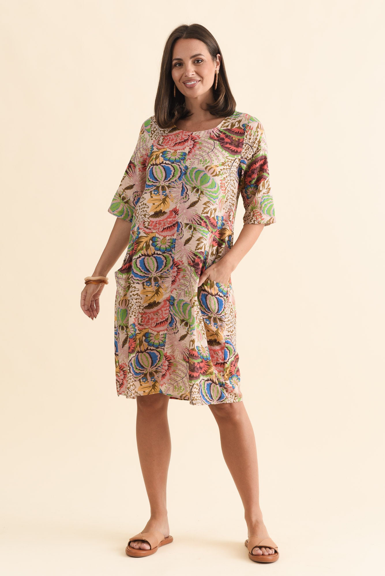 LILIBET GREEN BOTANICAL COTTON POCKET DRESS