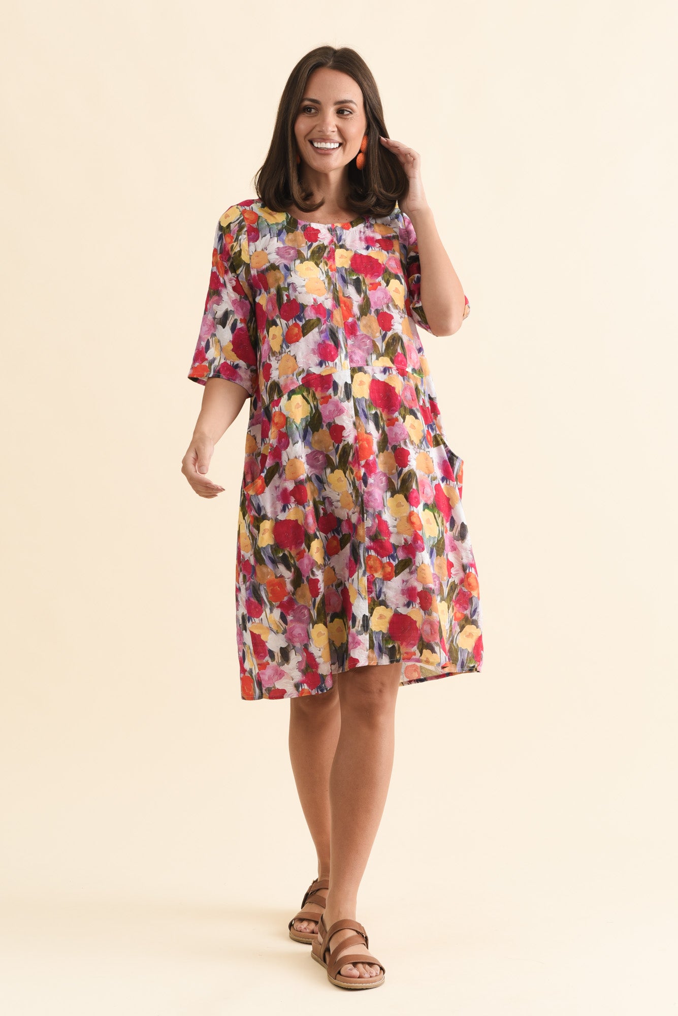 LILIBET PINK FLORAL COTTON POCKET DRESS