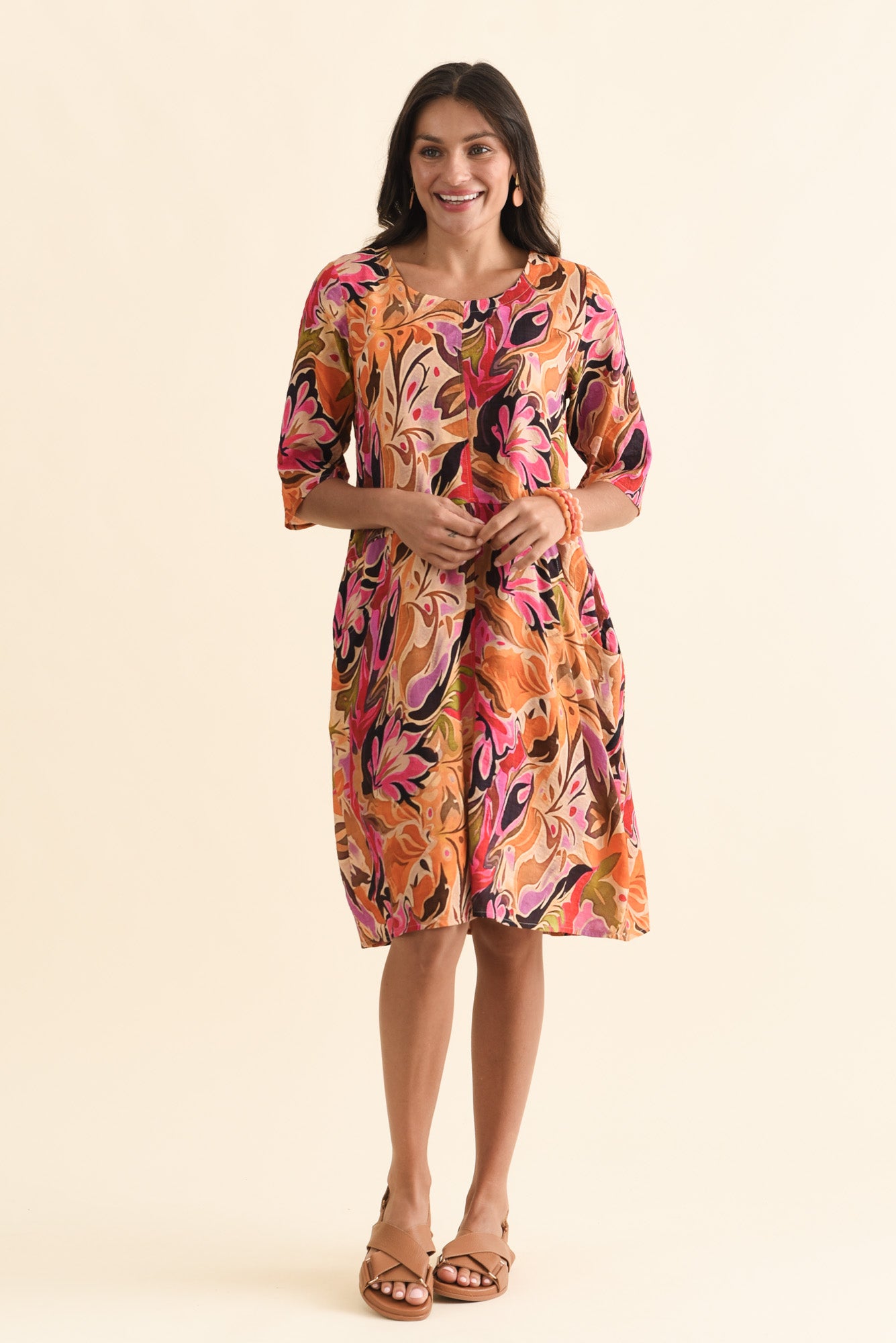 LILIBET PINK GARDEN COTTON POCKET DRESS