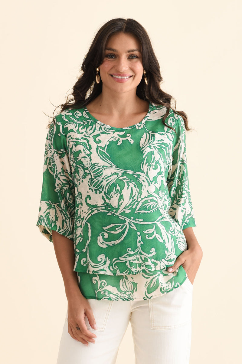 LIORA GREEN SWIRL LAYERED TOP