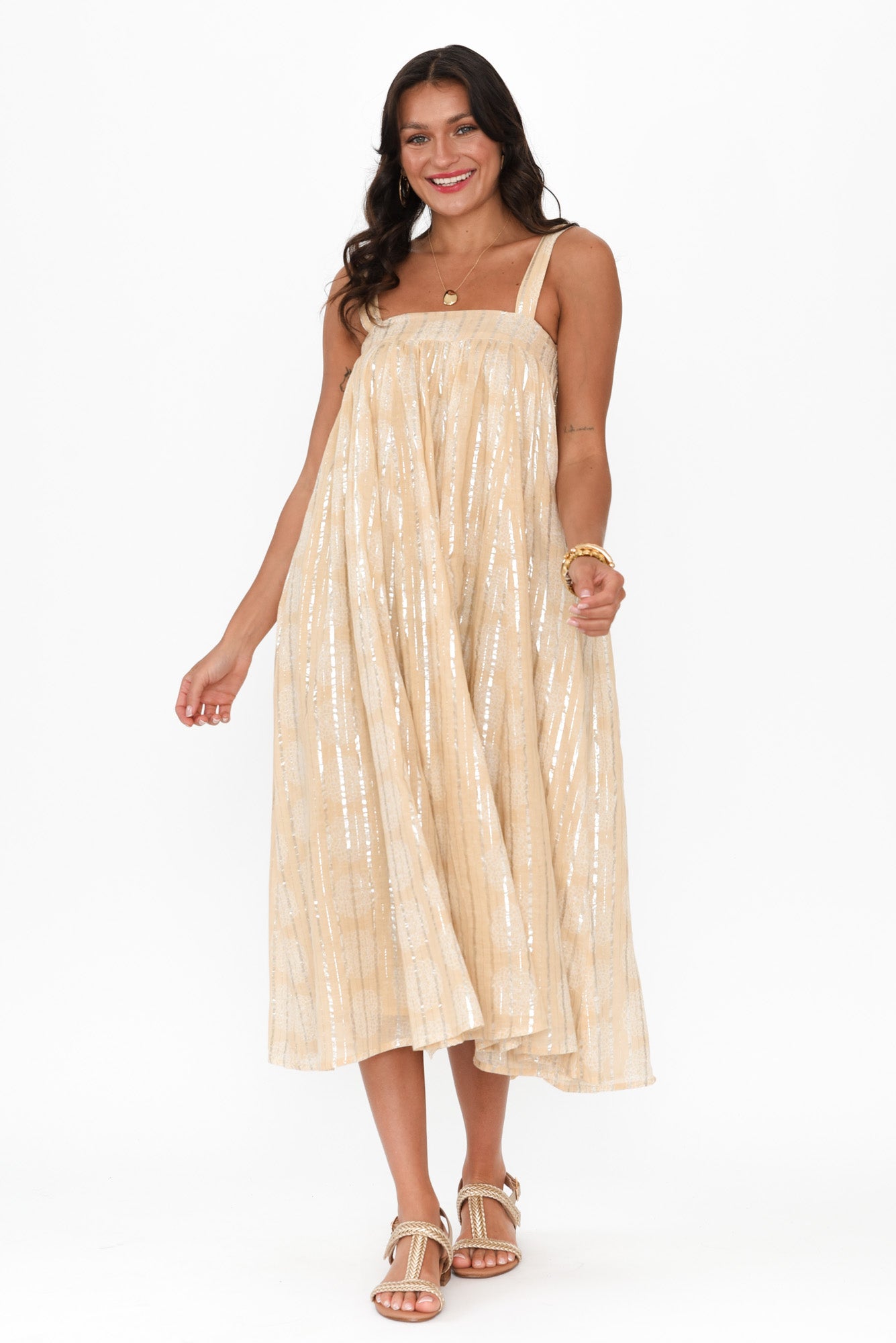 Livvy Beige Stripe Cotton Maxi Dress