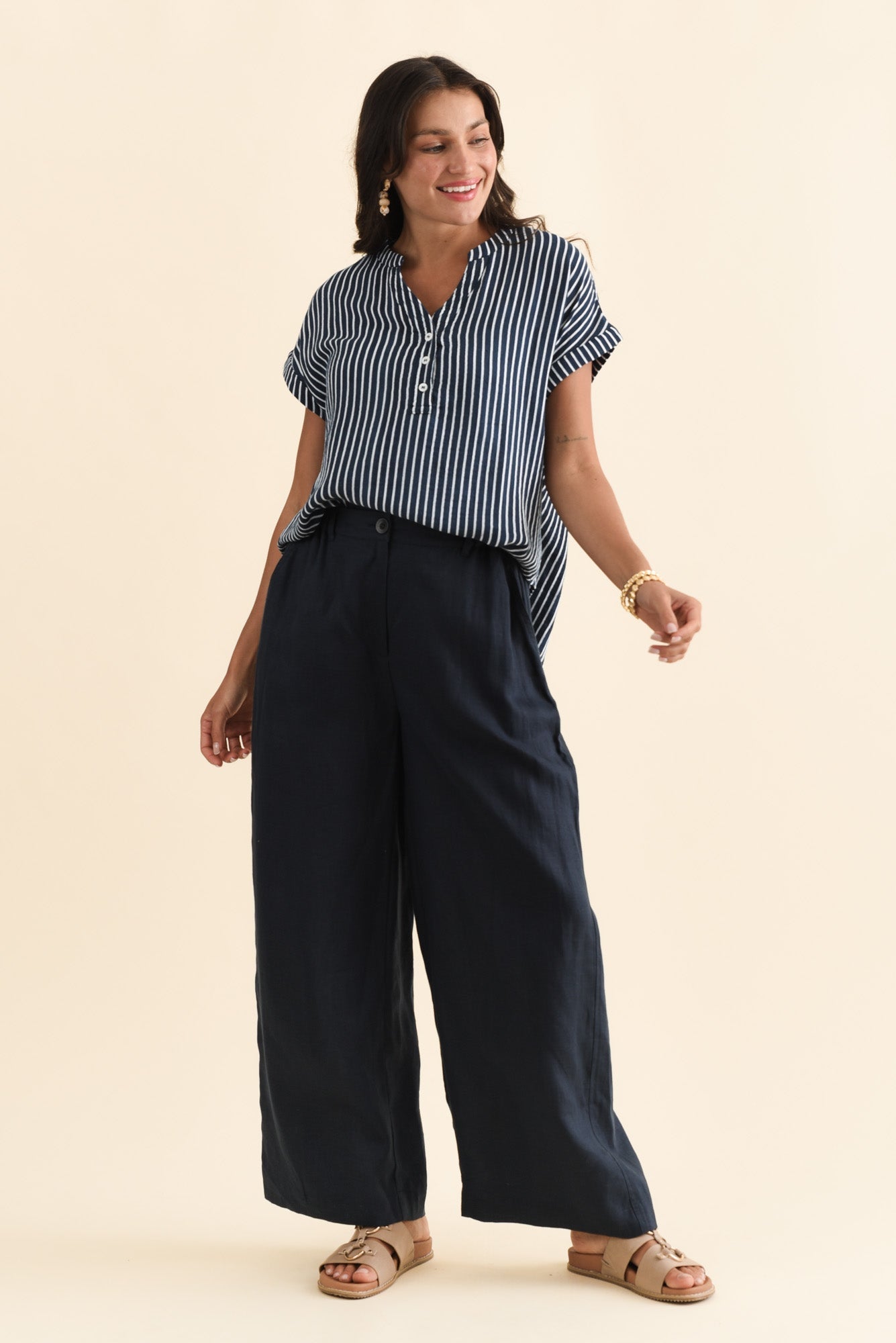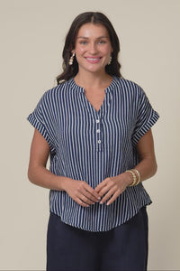 Lorelai Navy Stripe Cotton Top