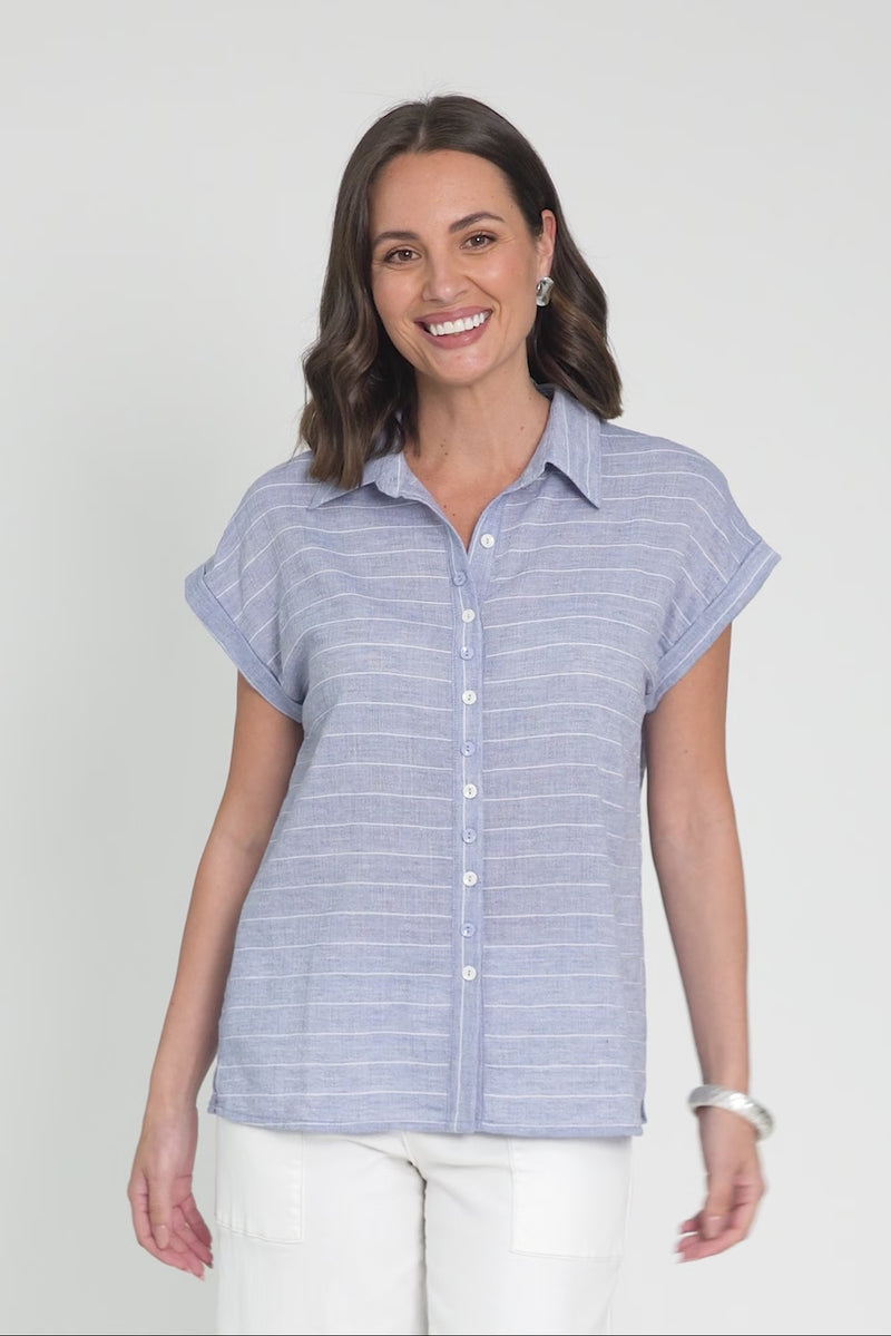 Lori Light Blue Stripe Collared Shirt