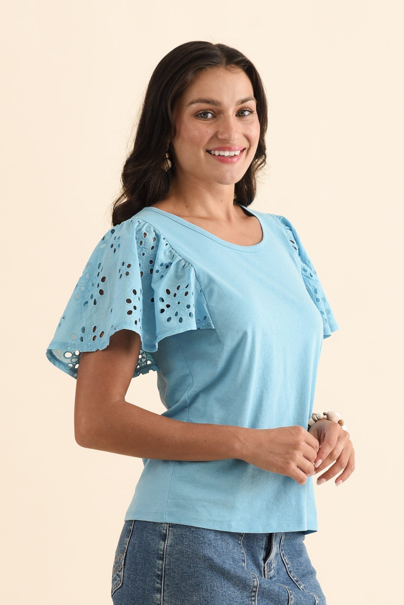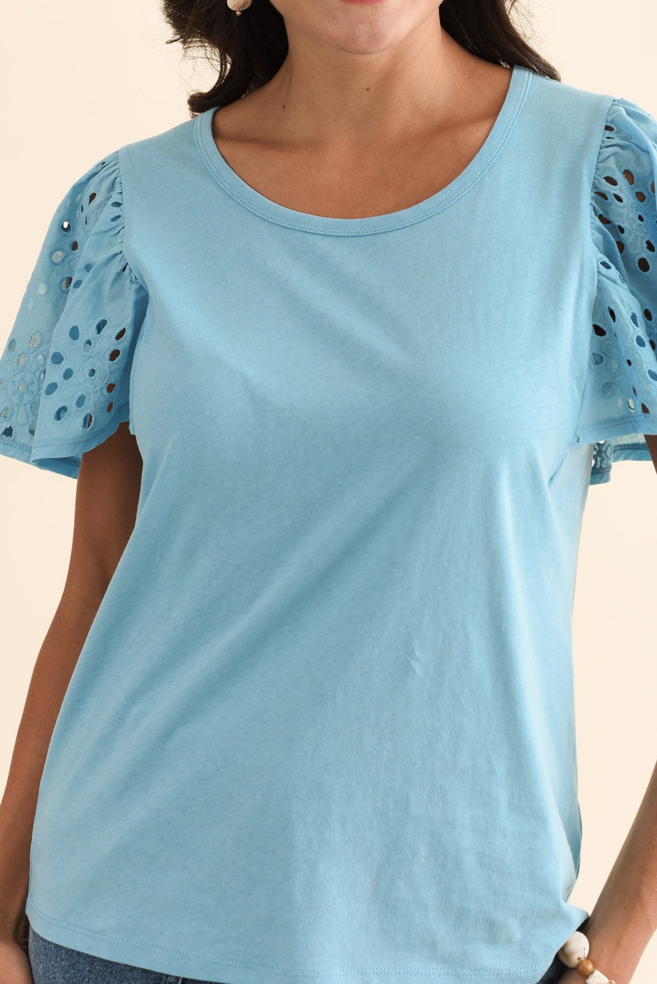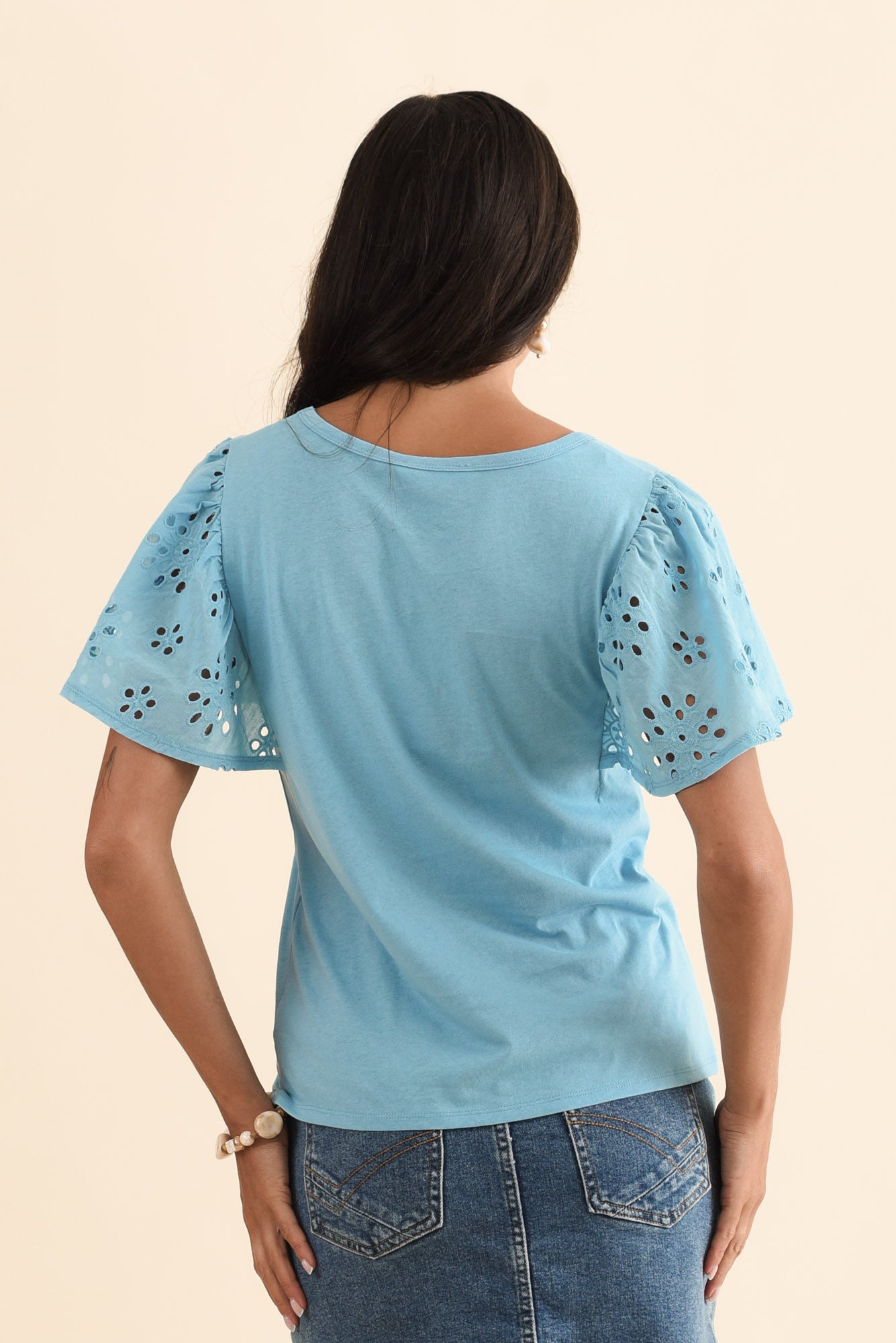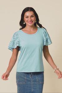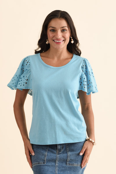 Lottie Blue Embroidered Cotton Tee