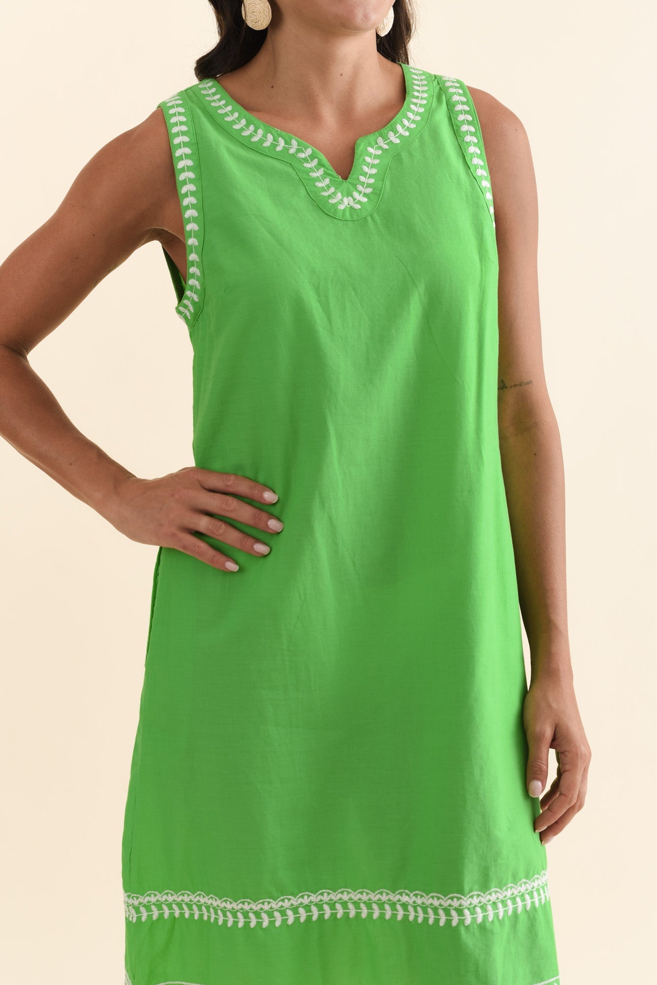 LYNDAL GREEN EMBROIDERED COTTON DRESS