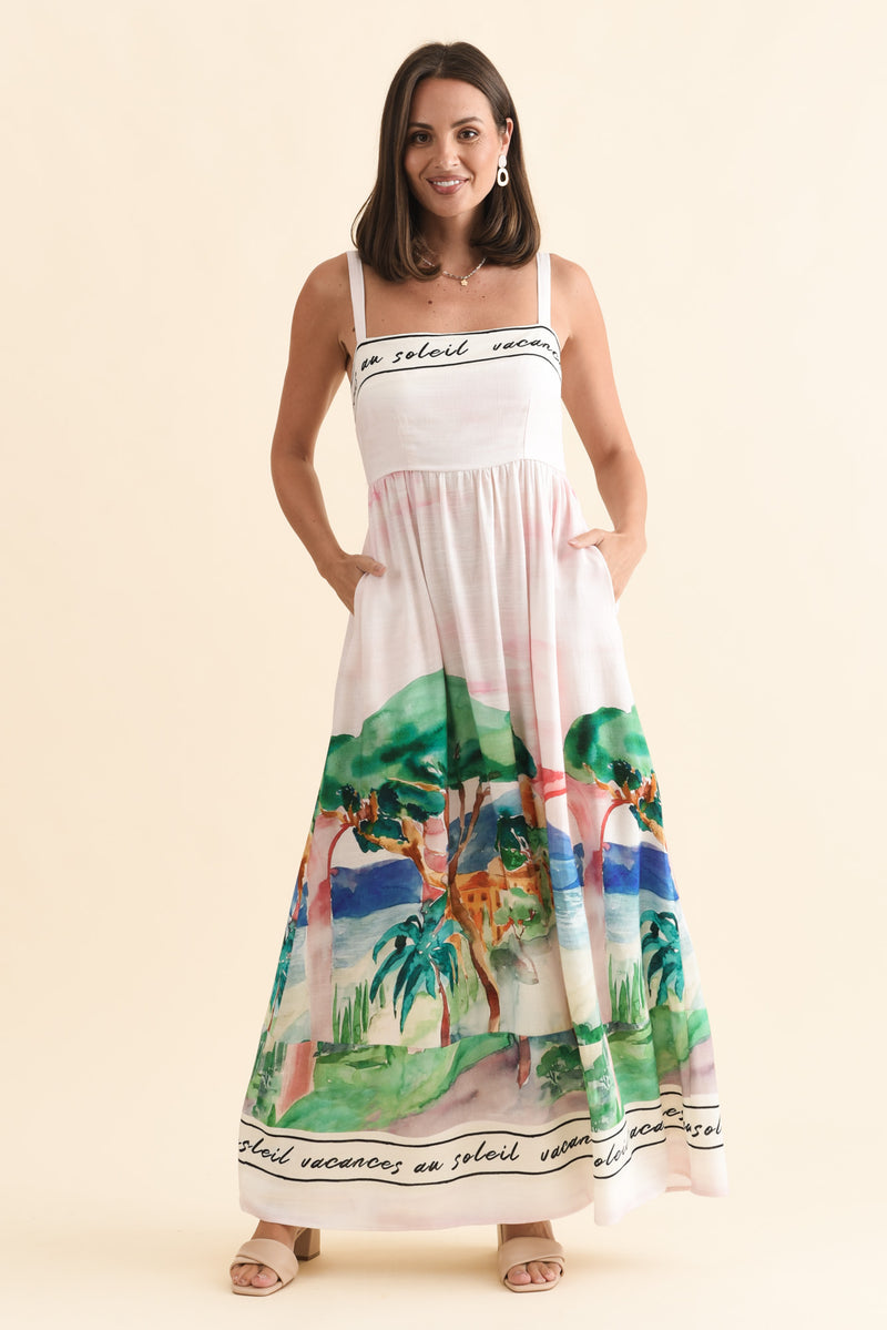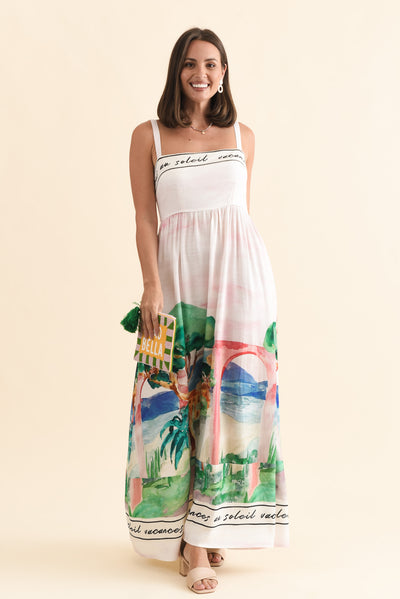 MACI WHITE TROPICAL LINEN BLEND DRESS