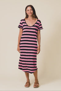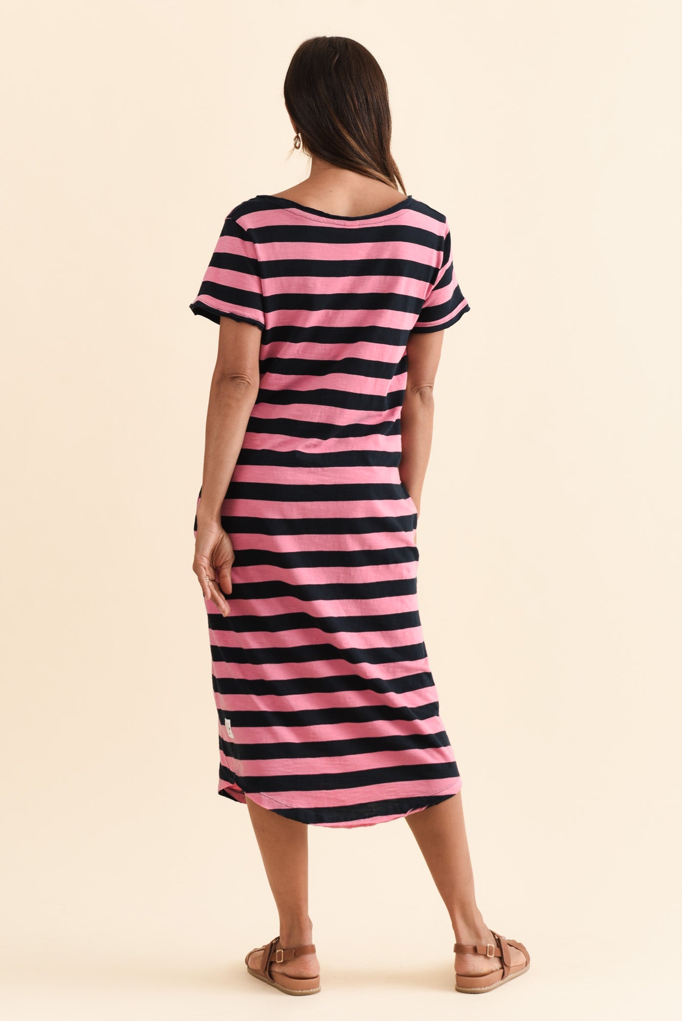 Maeve Hot Pink Stripe Cotton Midi Dress