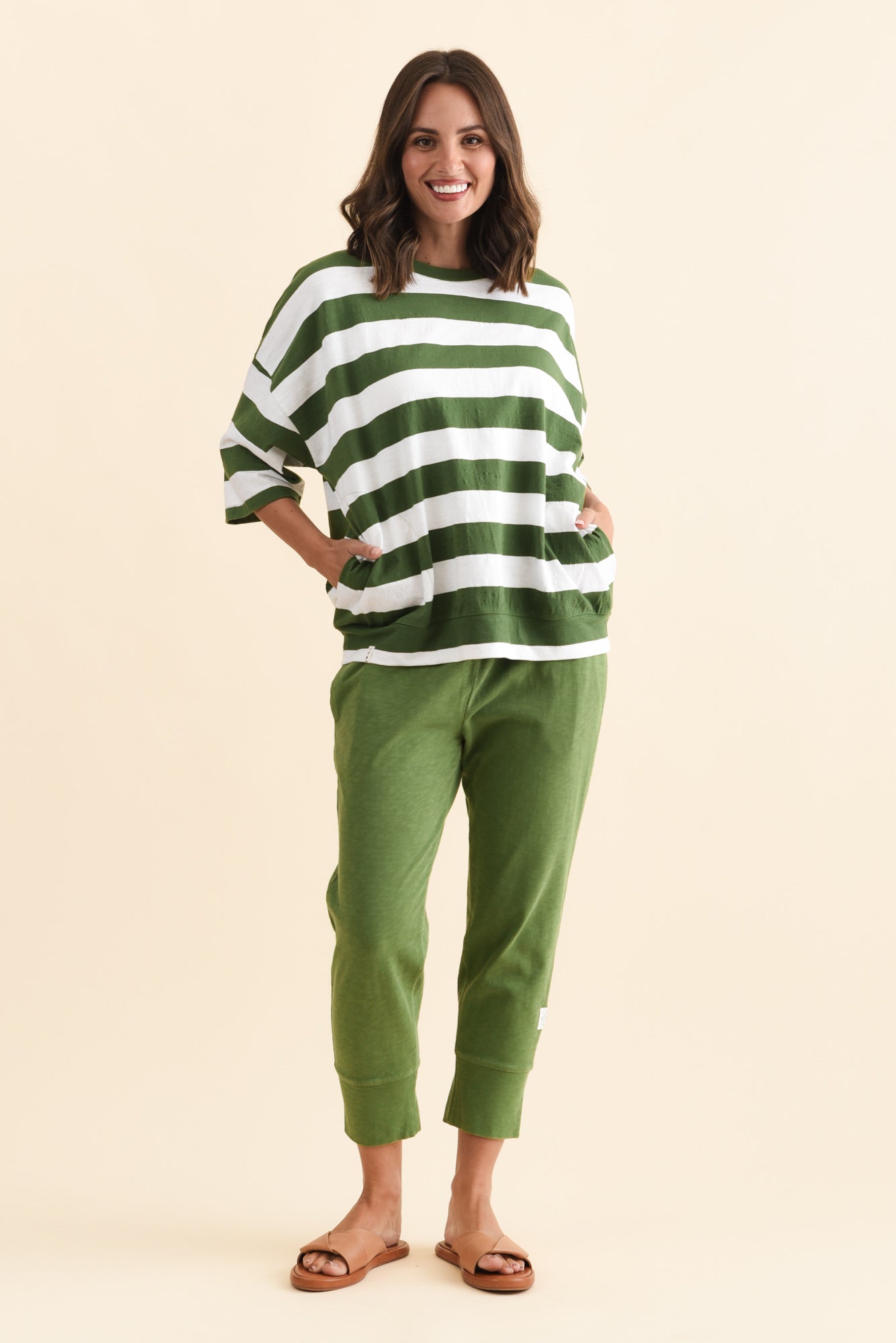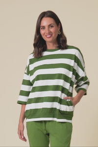 Mazie Olive Stripe Cotton Sweat
