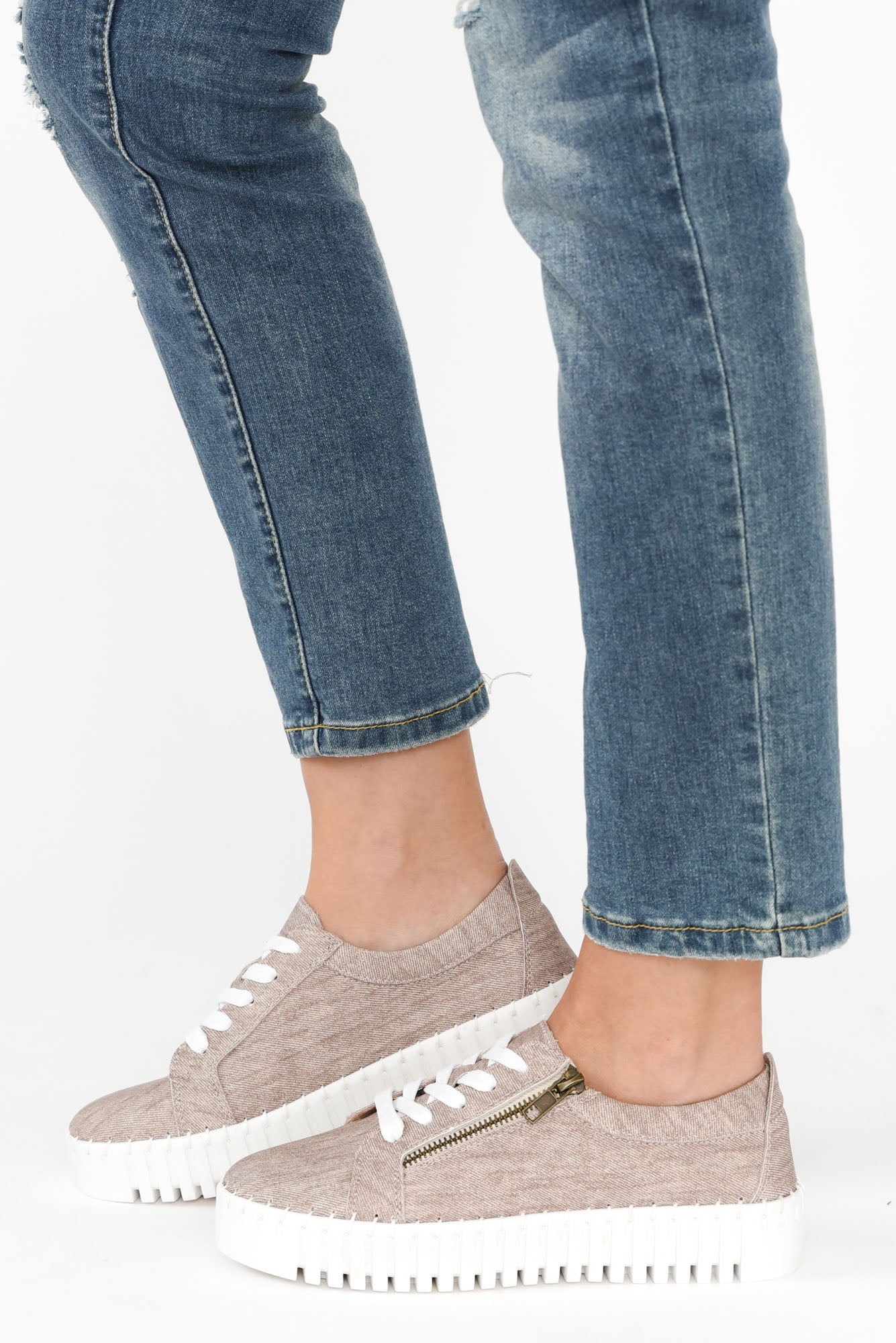 MEDUSA TAUPE TWILL PLATFORM SNEAKER