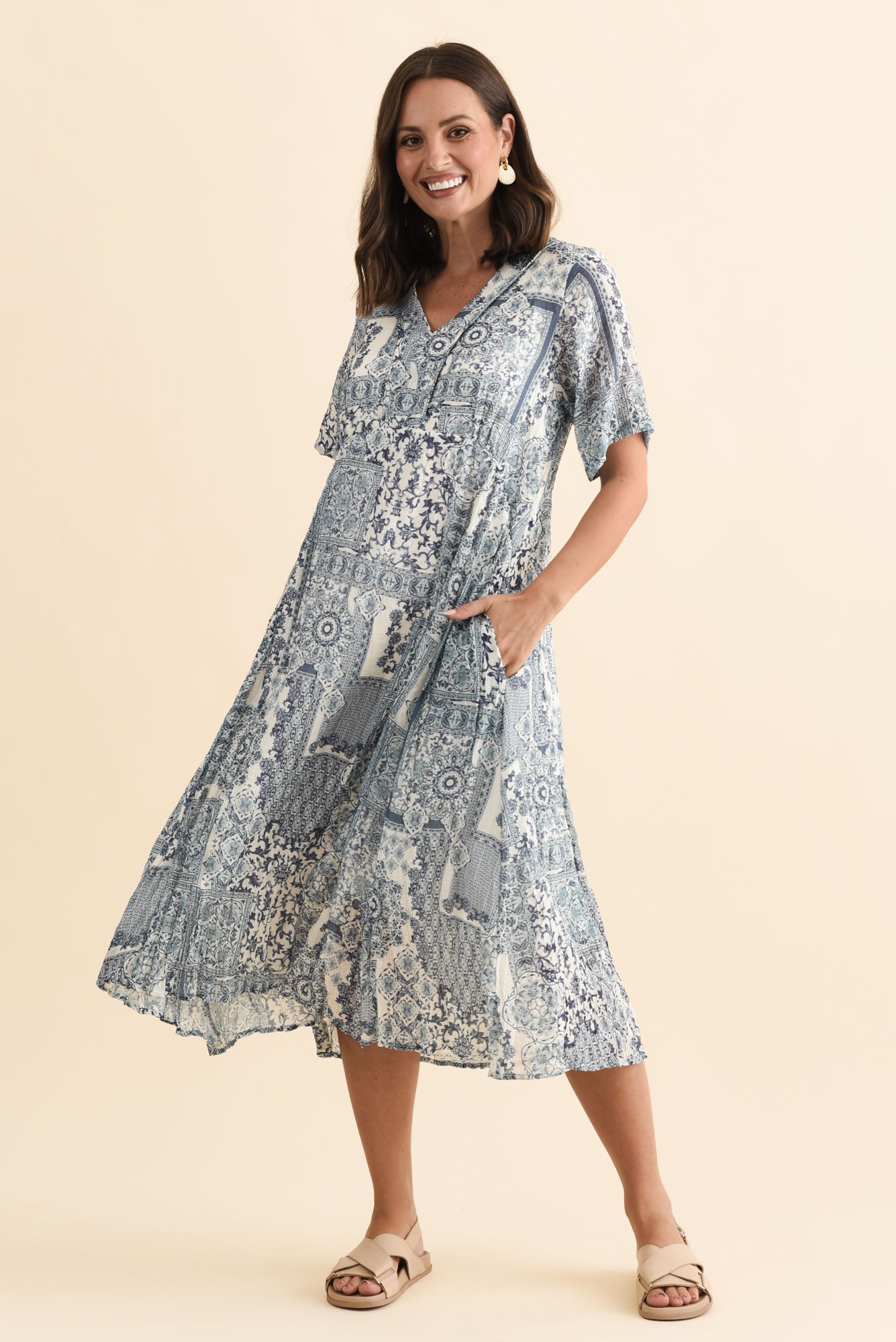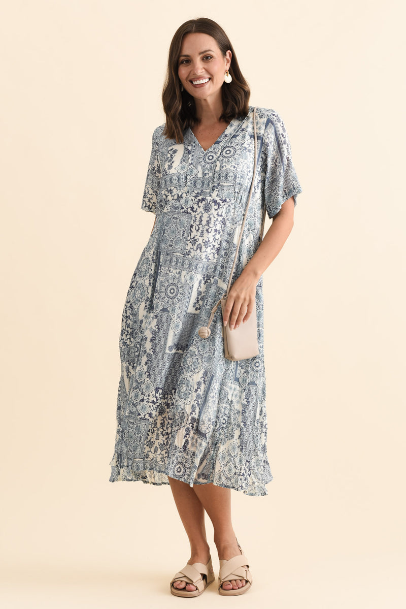 MEKA NAVY MOSAIC POCKET DRESS