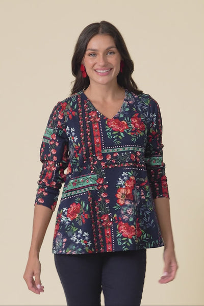 MIKI NAVY FLORAL TOP