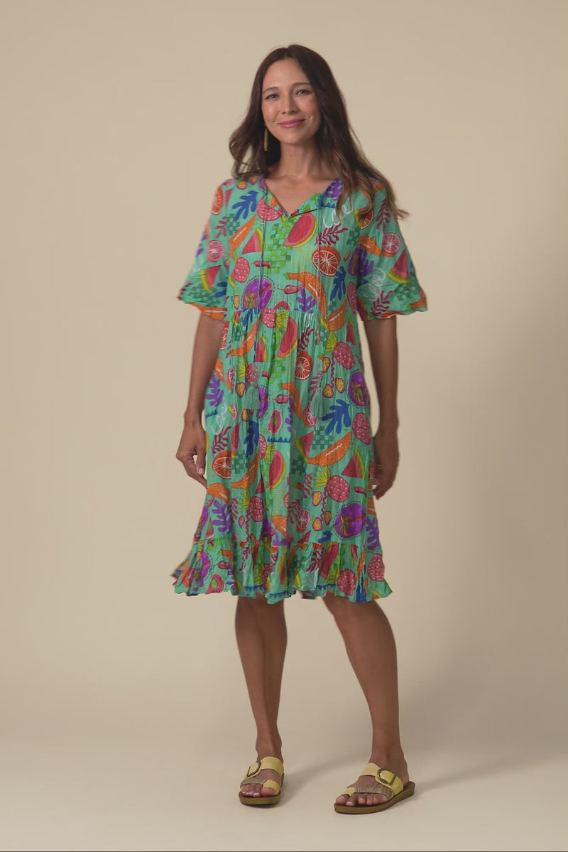 Mila Blue Garden Crinkle Cotton Dress