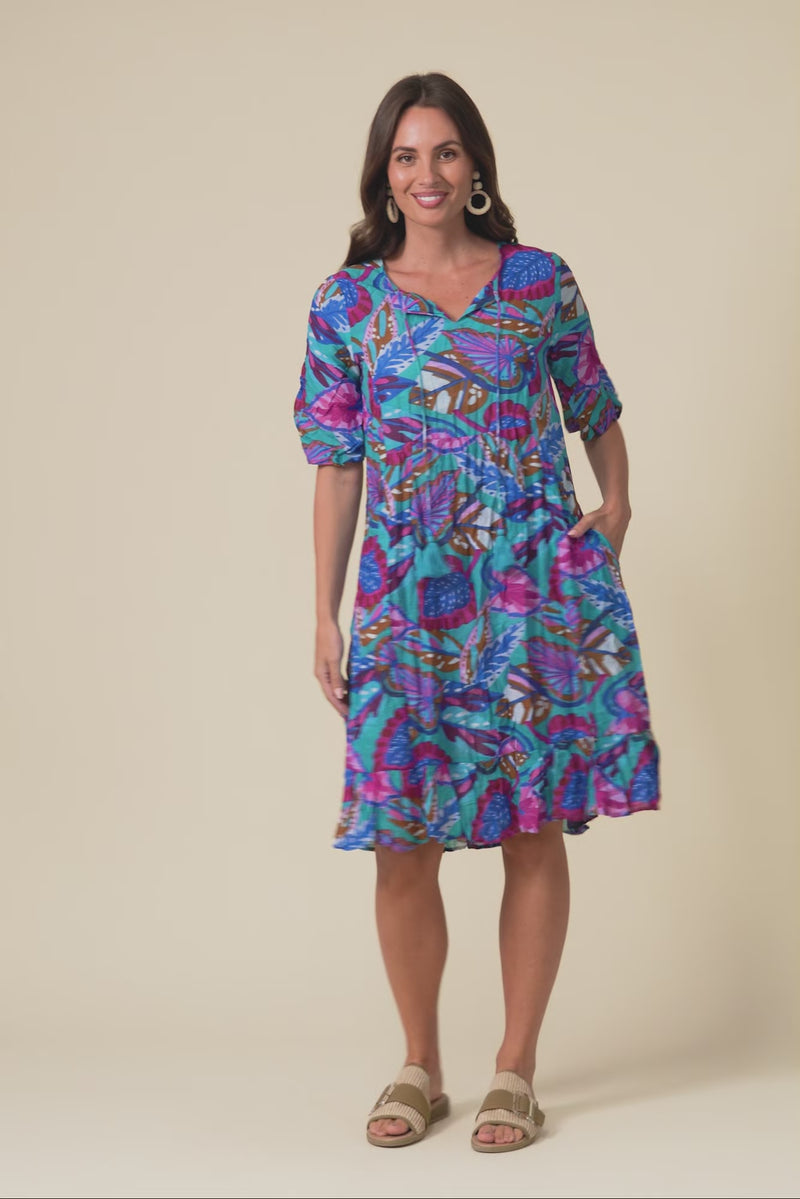 Mila Blue Tropical Crinkle Cotton Dress