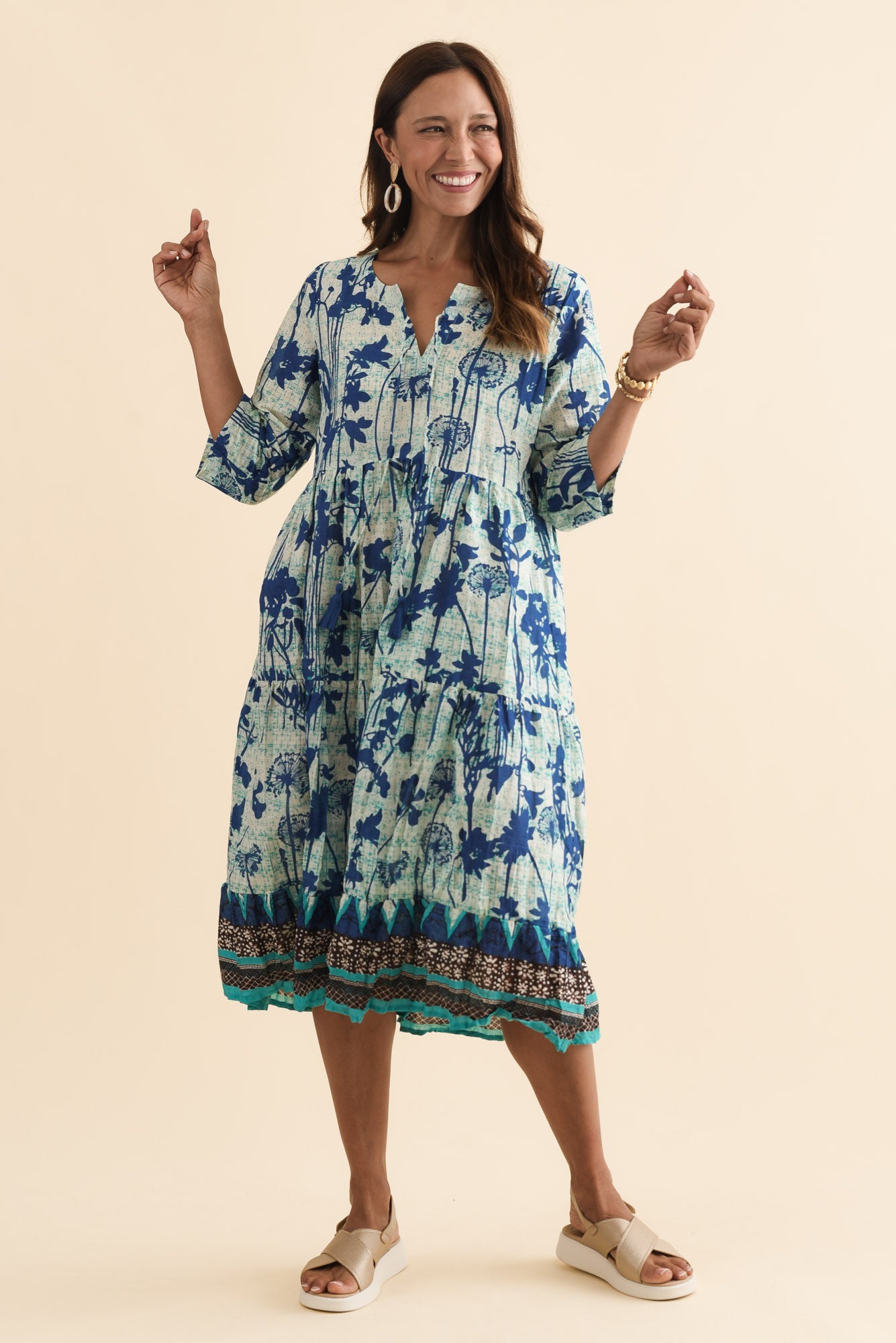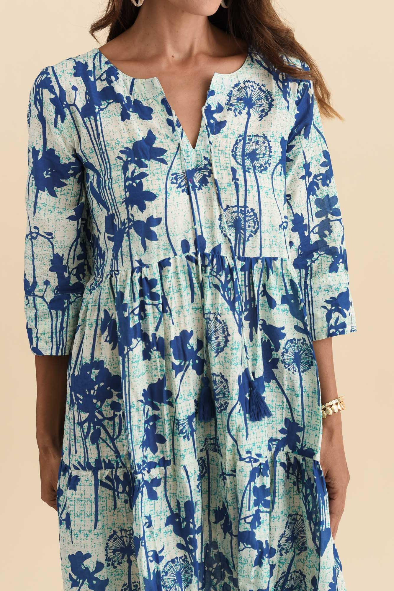 Milana Cobalt Dandelion Crinkle Cotton Dress