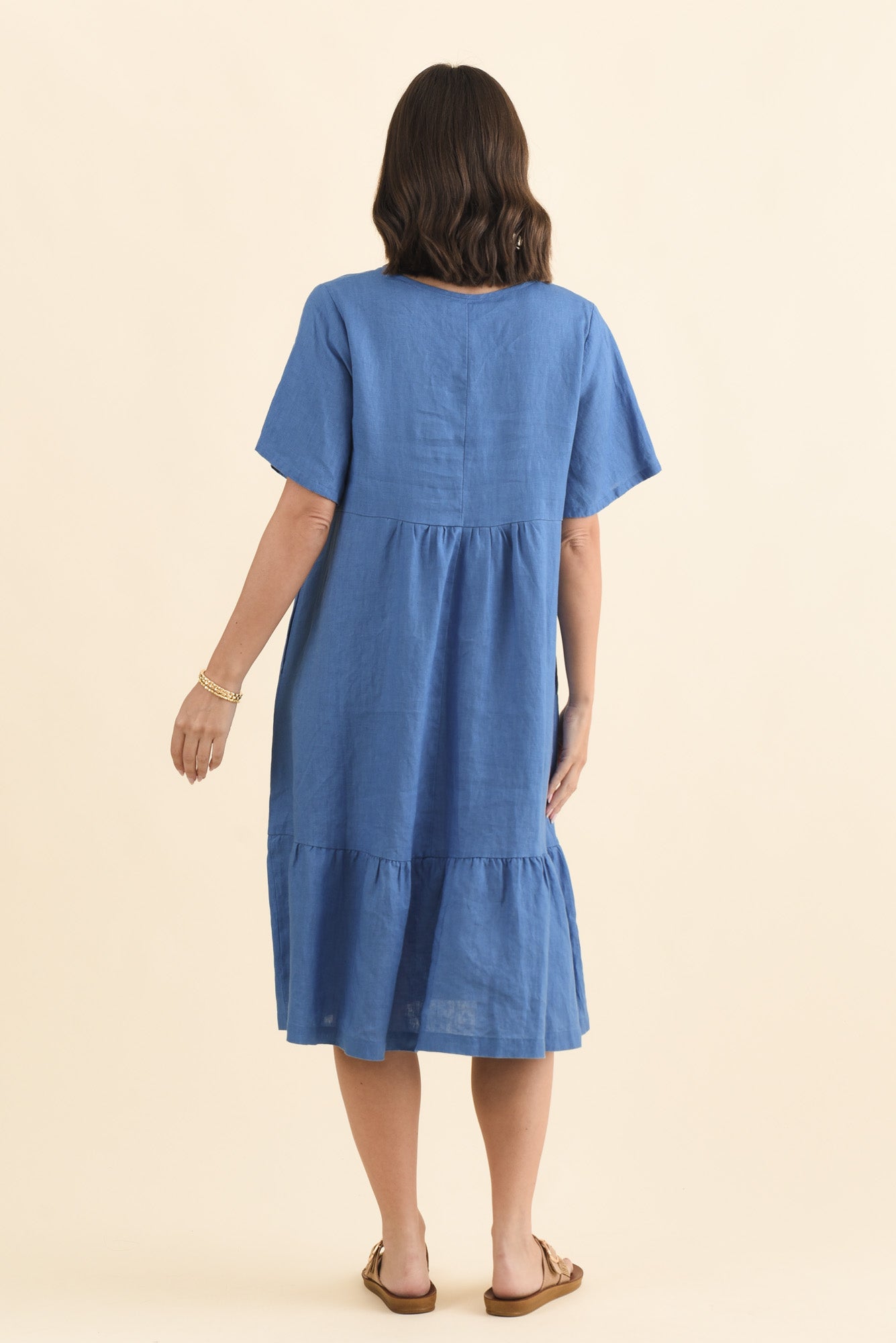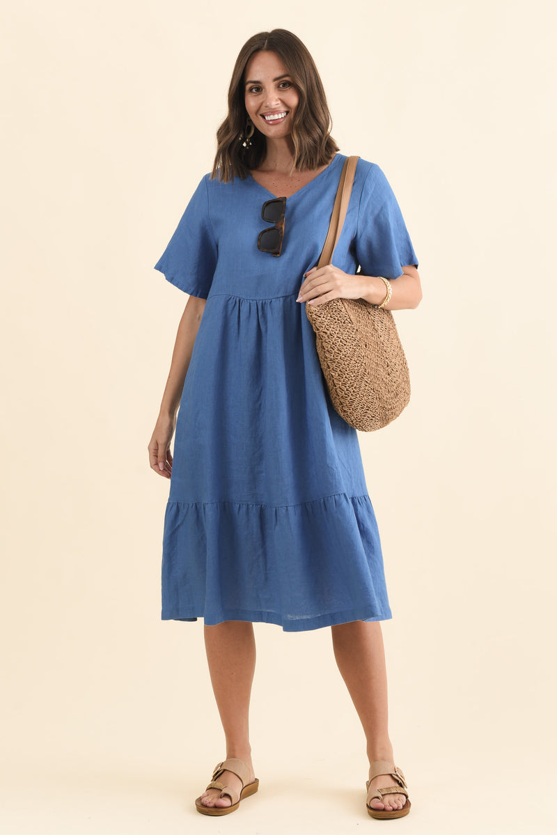 Miller Blue Linen Tiered Dress