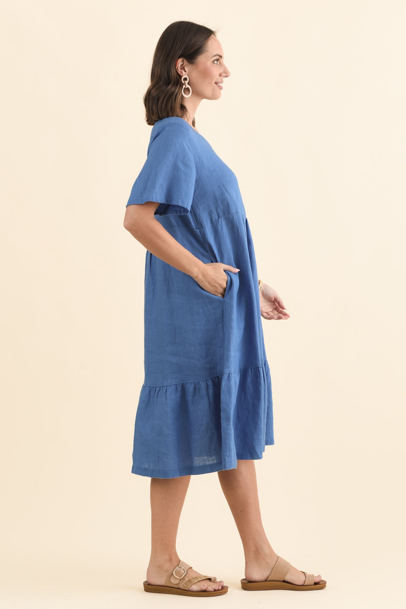 Crafted from breathable pure linen with a soft woven texture, this dress delivers effortless comfort and a refined finish