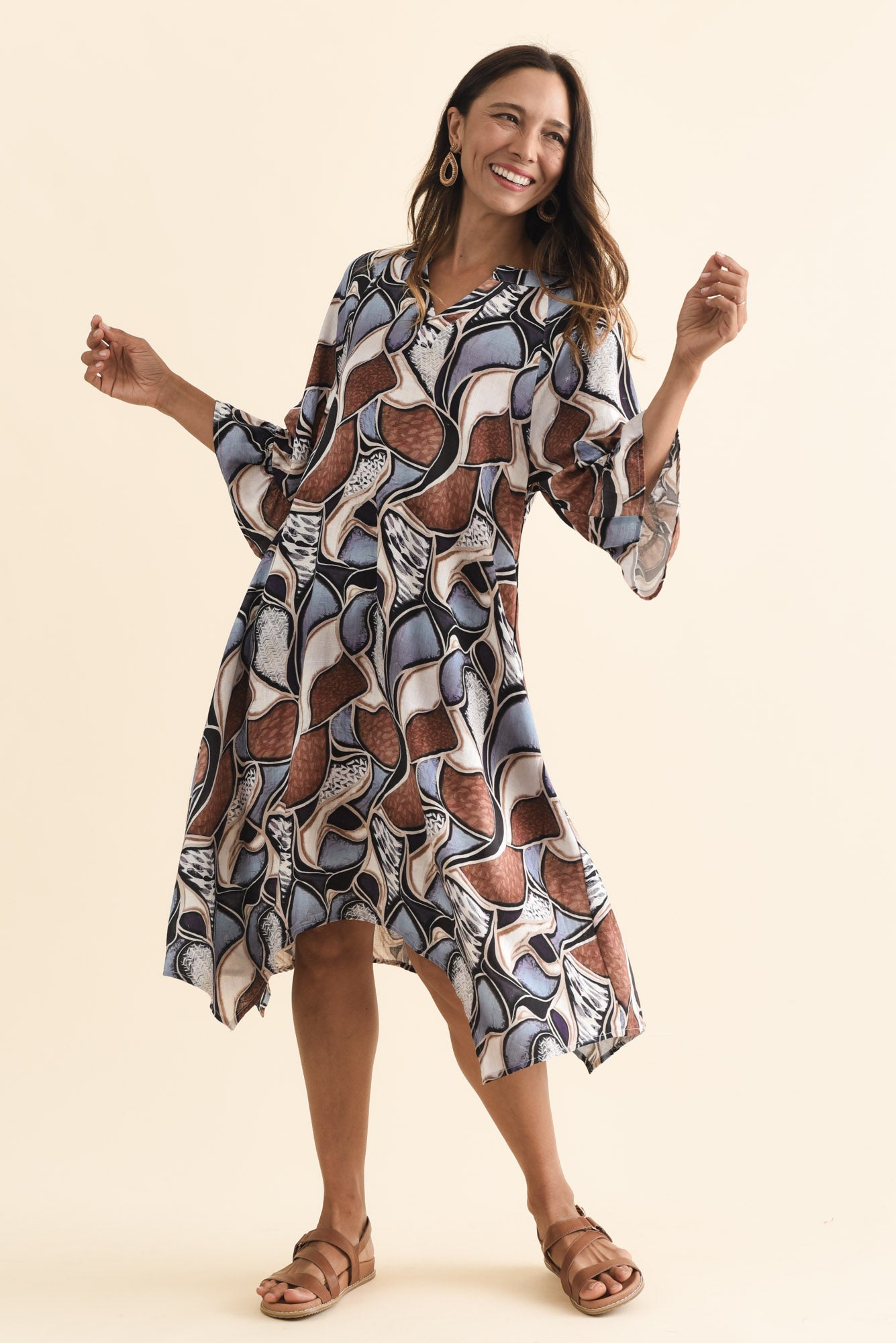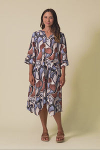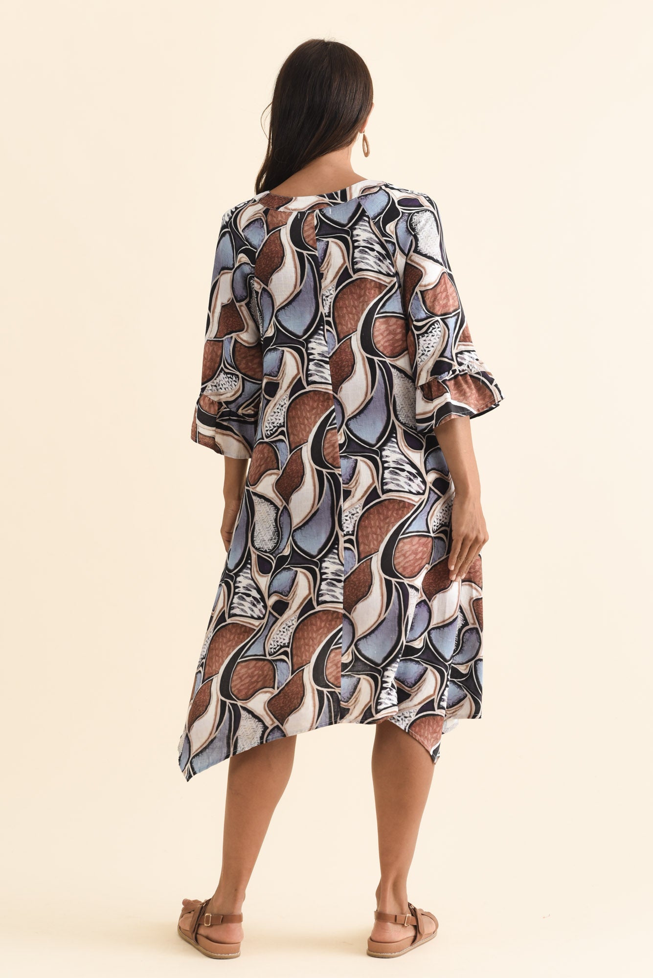 MILLICENT BLUE ABSTRACT LINEN COTTON DRESS