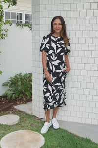 Mimosa Black Leaf Cotton Tee Dress