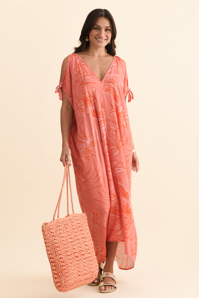 Miranda Pink Botanical Cold Shoulder Kaftan
