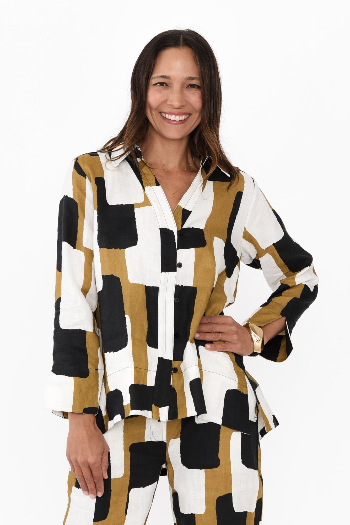MIRIAM YELLOW GEO LINEN TUNIC