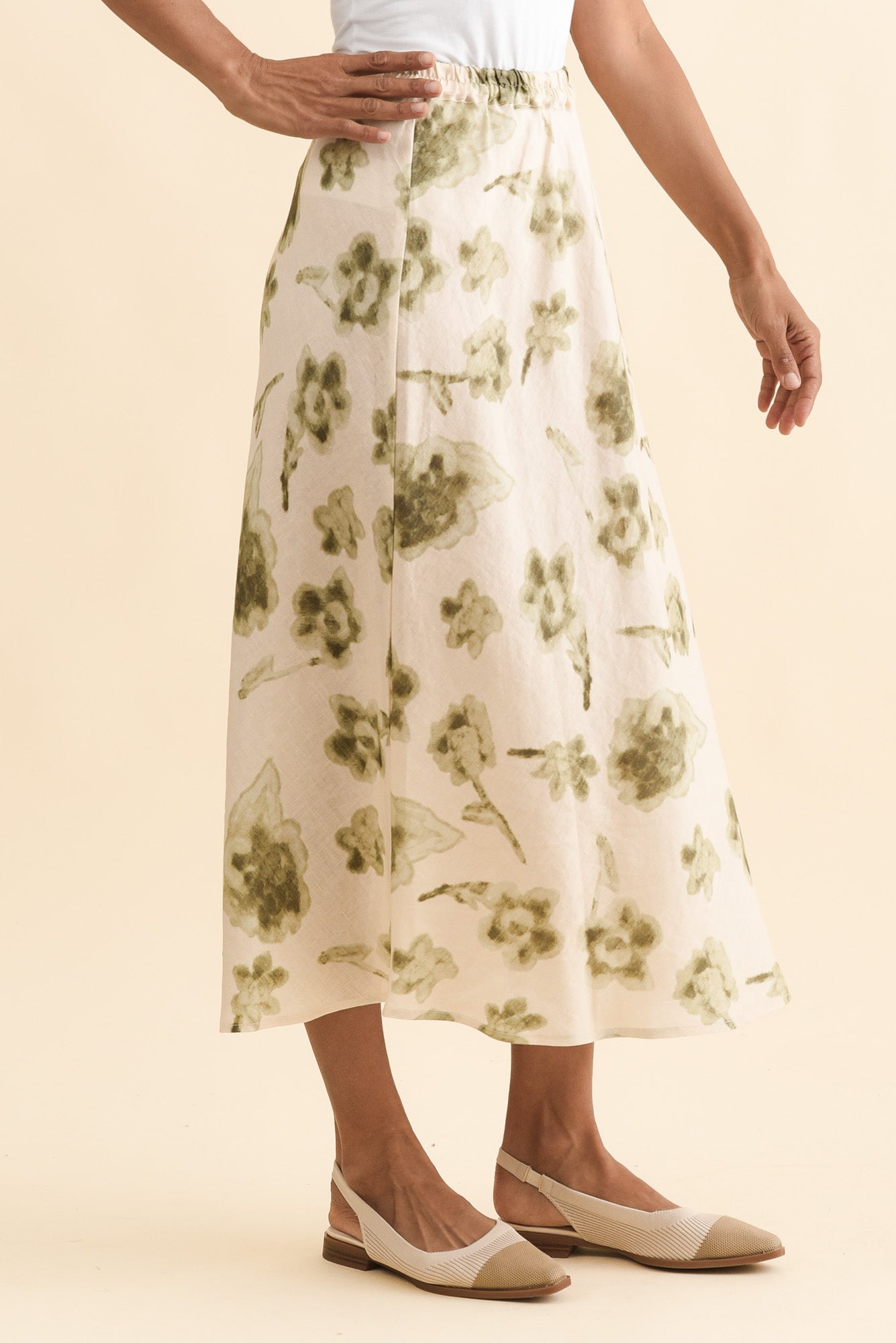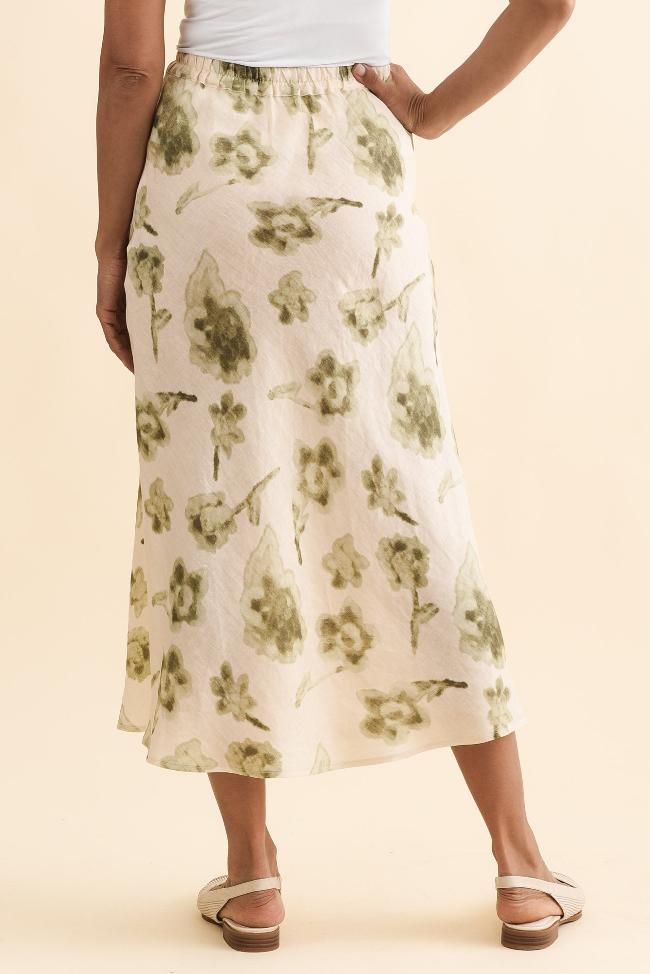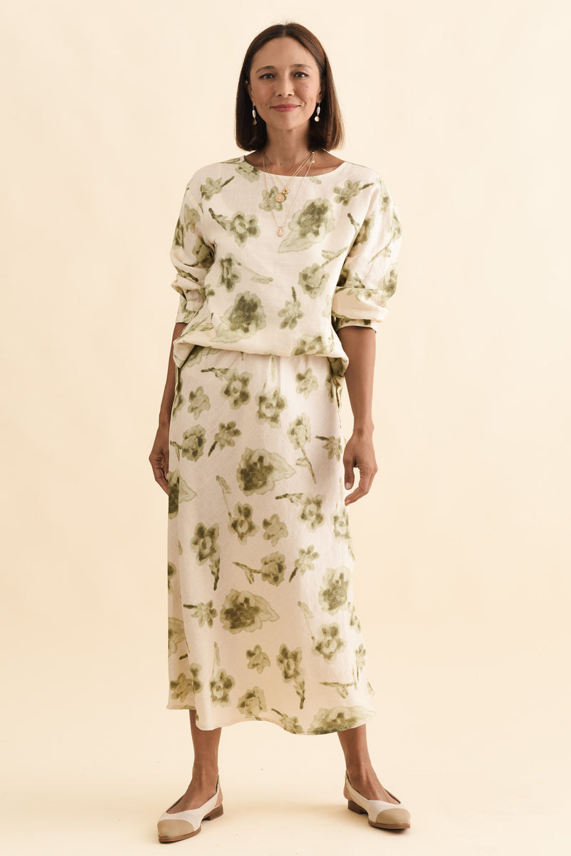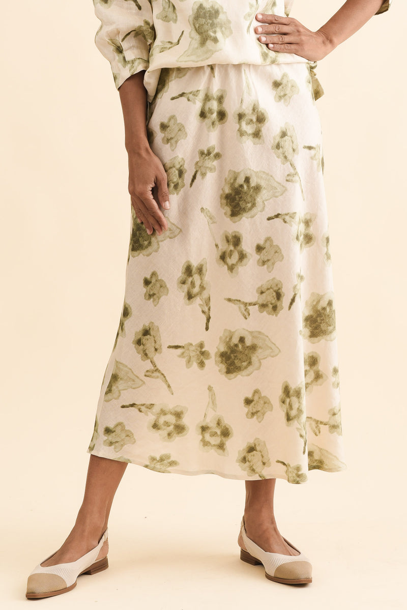 Modena Cream Floral Linen Midi Skirt