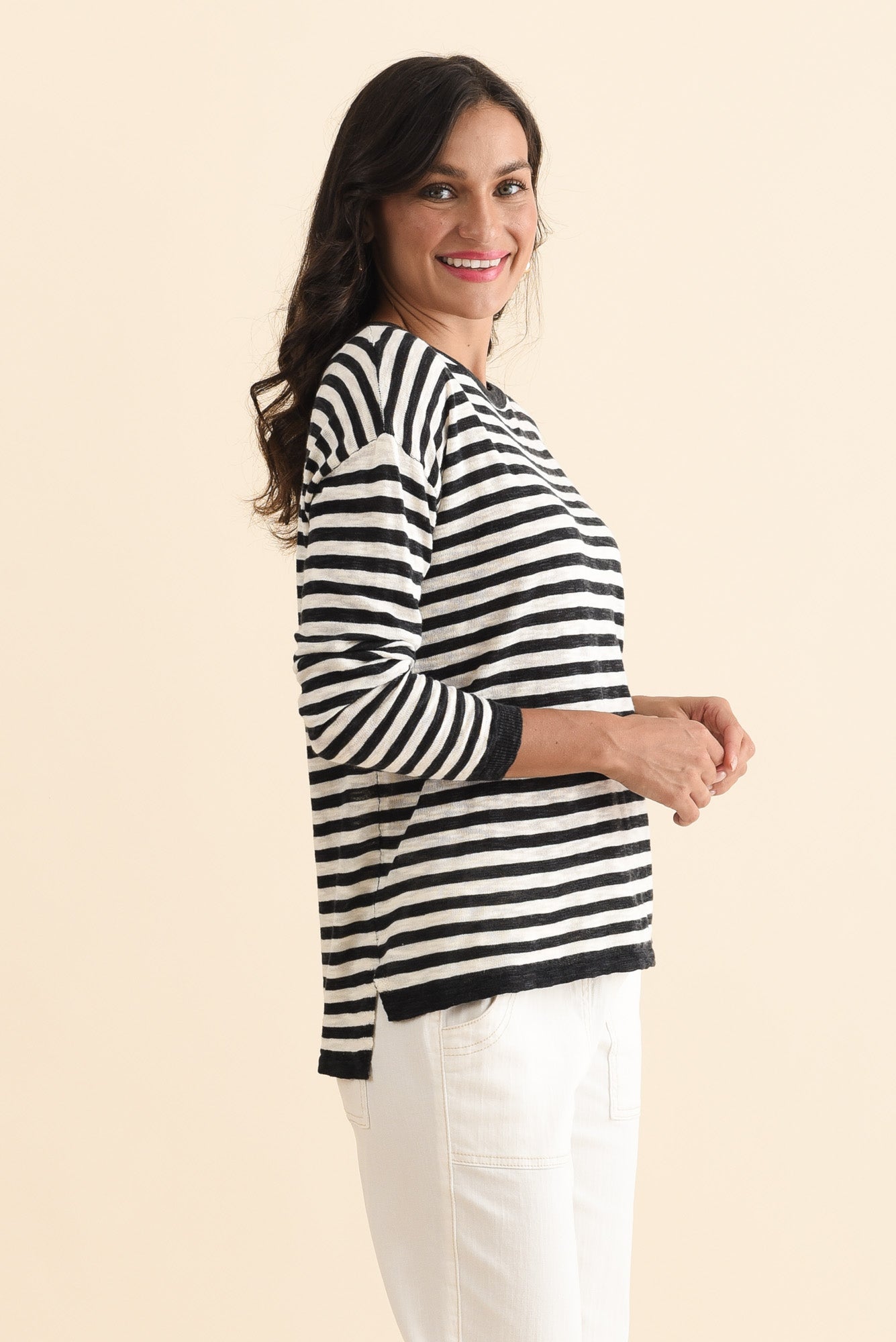 Natasha Black Stripe Knit Top