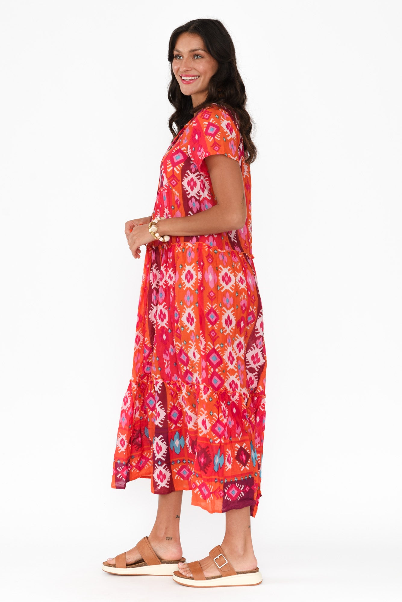 NONA ORANGE GEO CRINKLE COTTON MAXI DRESS