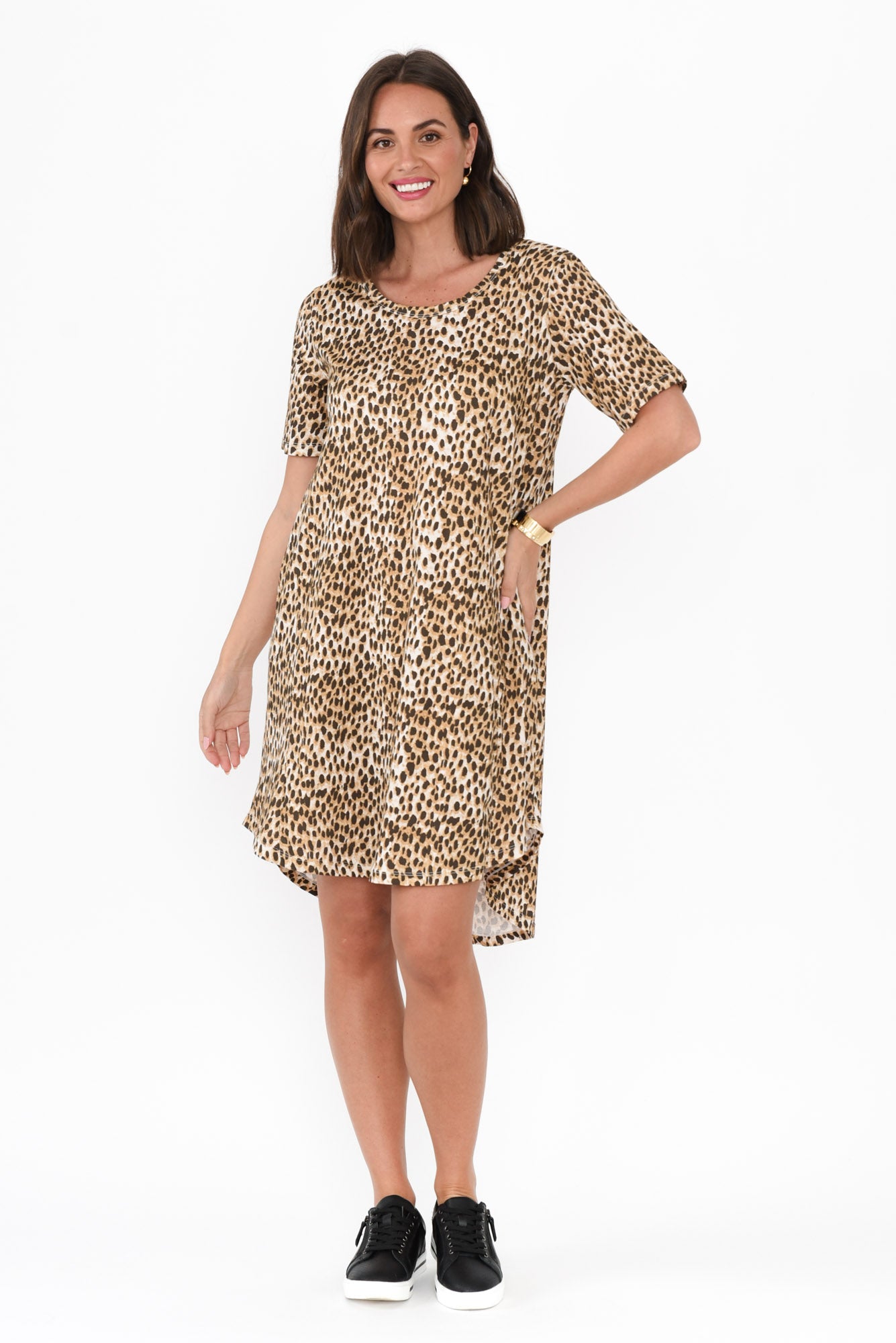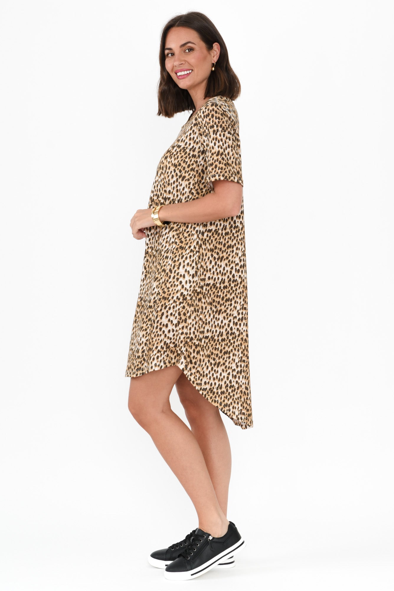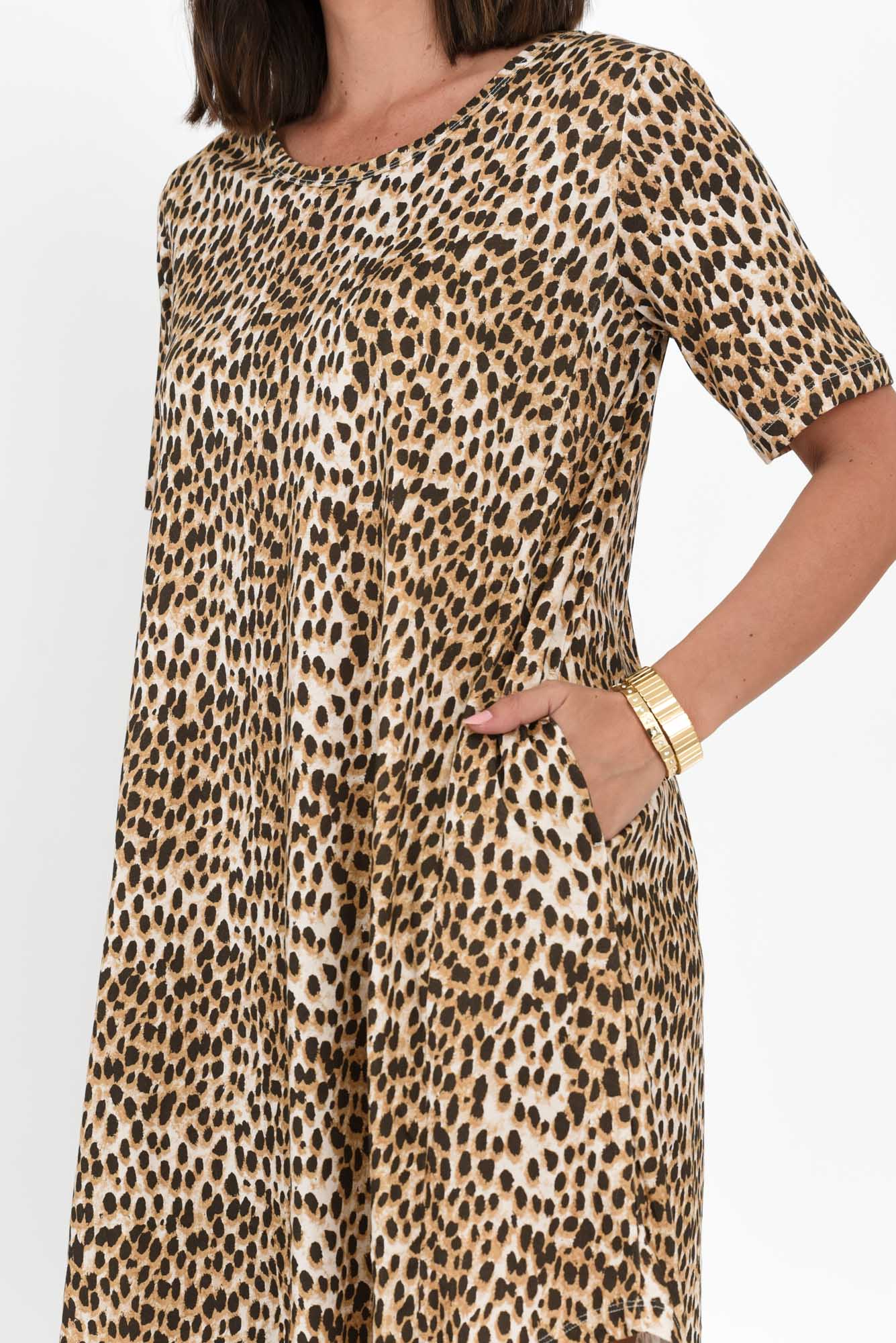 Nyree Brown Leopard Hi Lo Cotton Dress