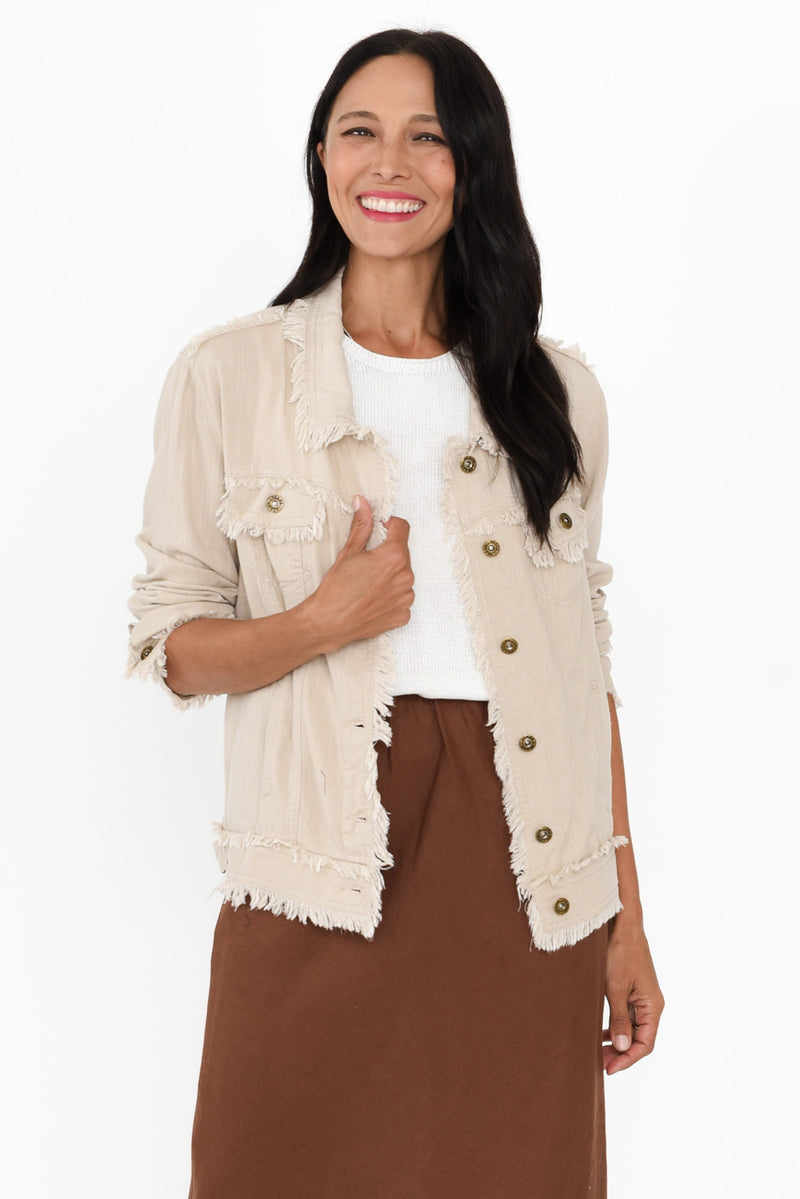 Oakley Beige Linen Frayed Jacket
