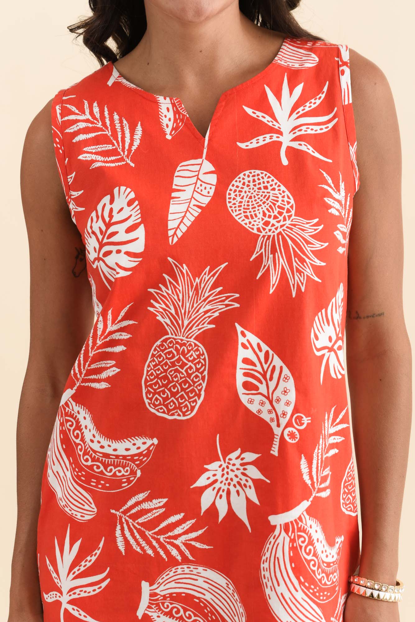 ODELL RED TROPICAL COTTON POCKET DRESS