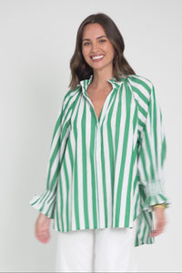 OLAY GREEN STRIPE COTTON PUFF SLEEVE SHIRT