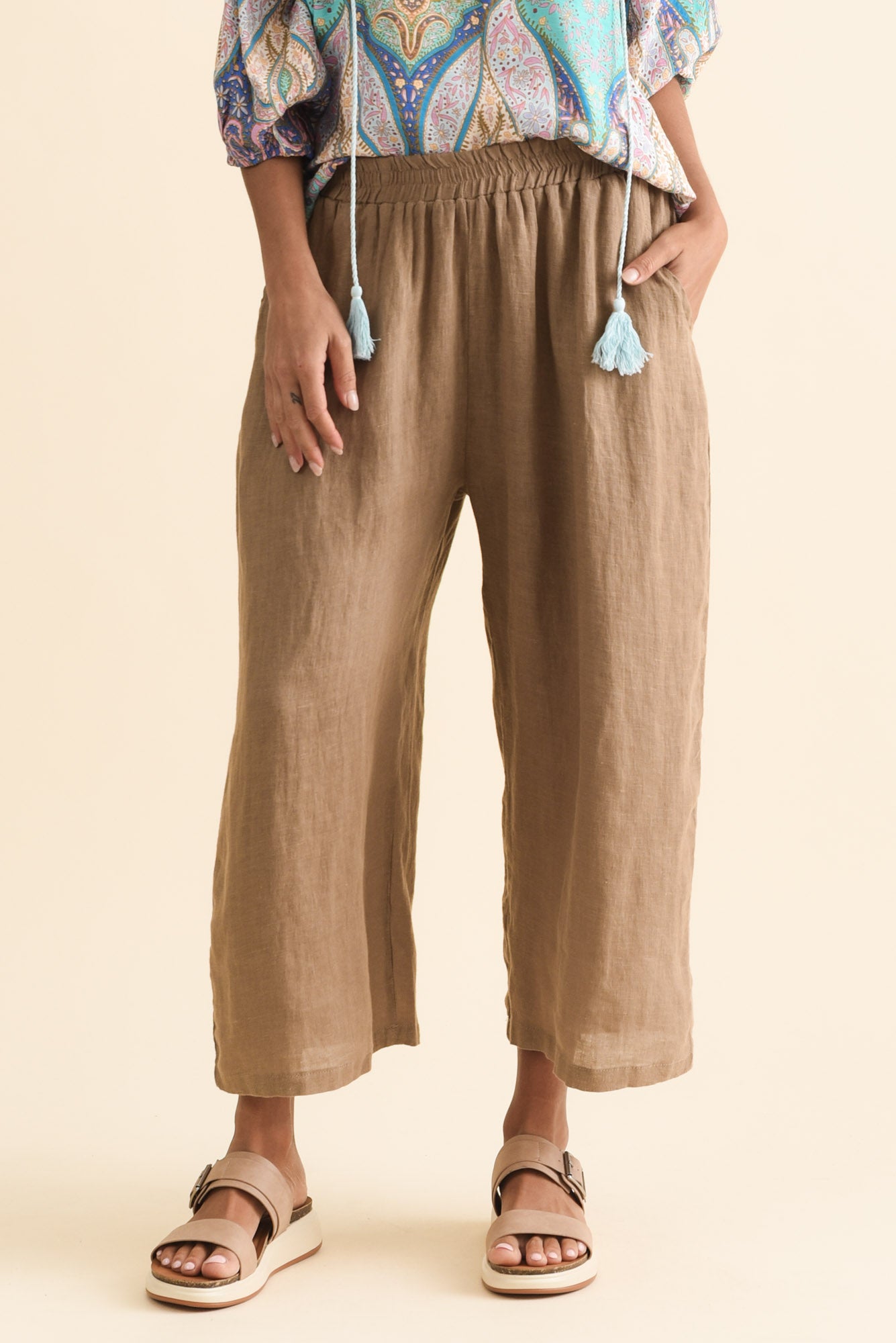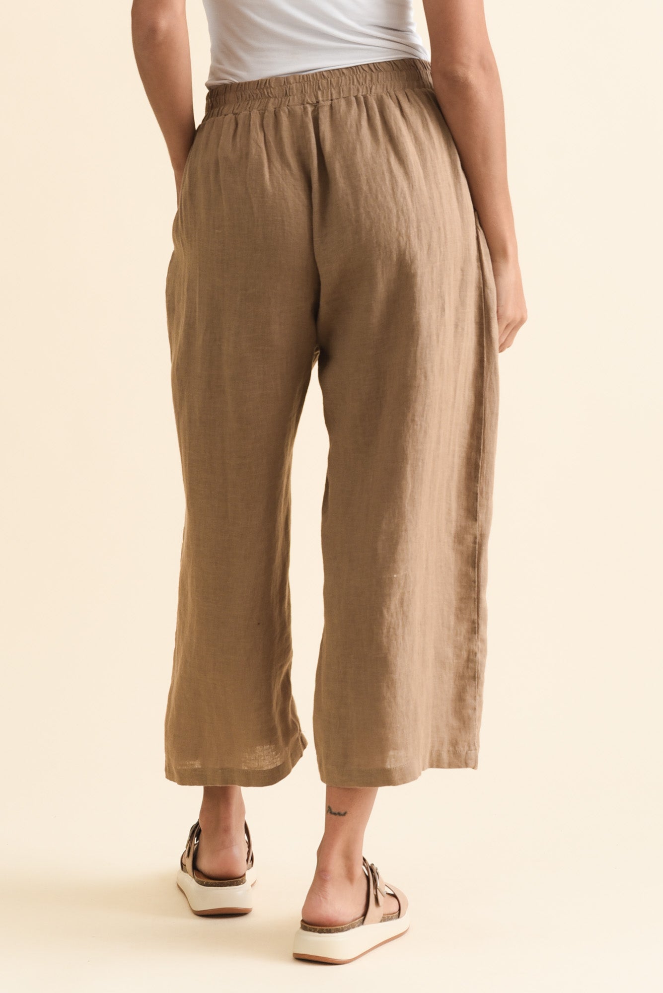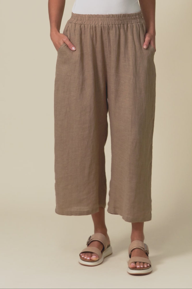OLGA MOCHA LINEN WIDE LEG PANTS
