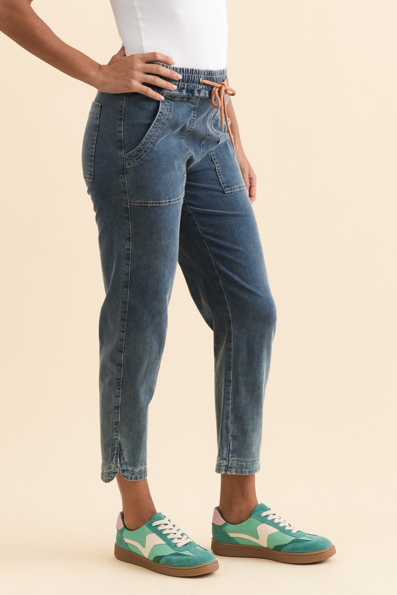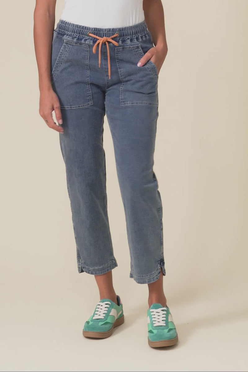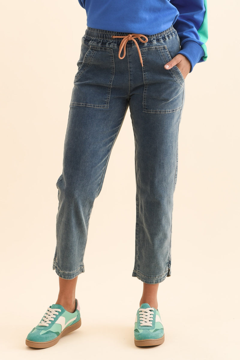 Orbe Dark Blue Denim Drawstring Jeans