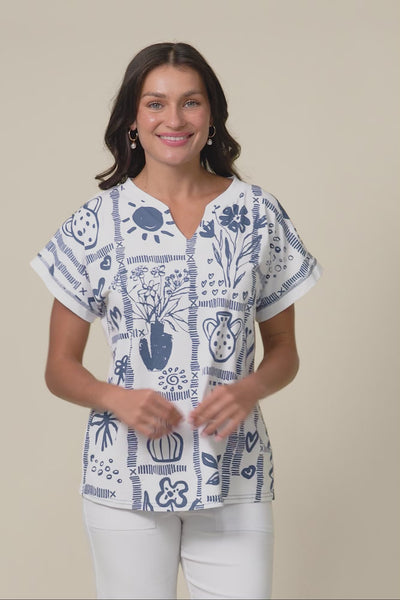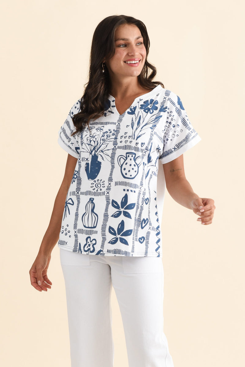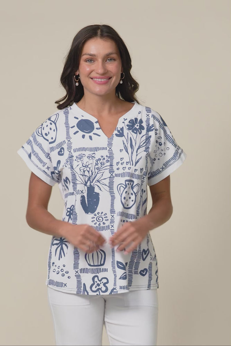 PERRIE BLUE TILE V NECK TOP