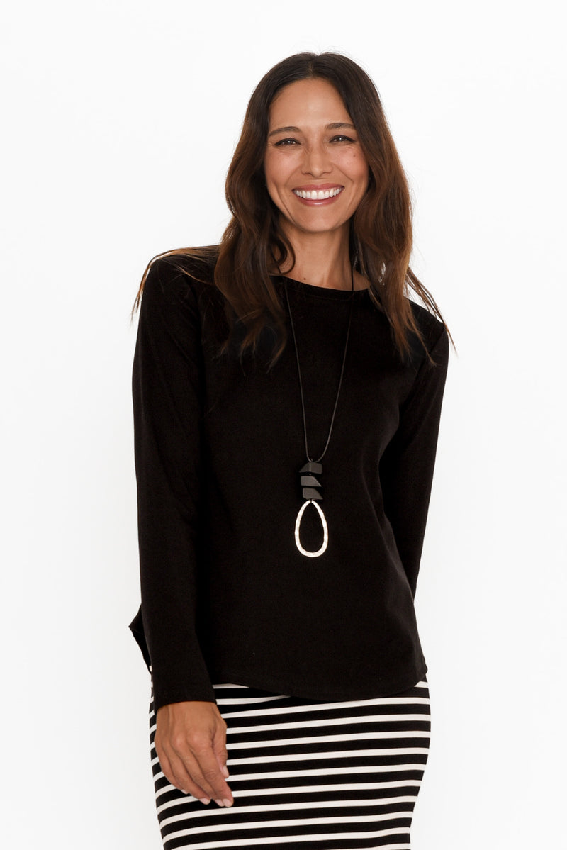 PORTER BLACK COTTON LONG SLEEVE TOP