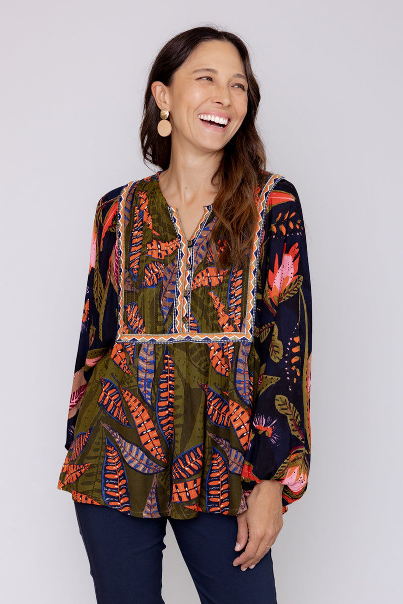 POTENZA GREEN LEAF PUFF SLEEVE BLOUSE