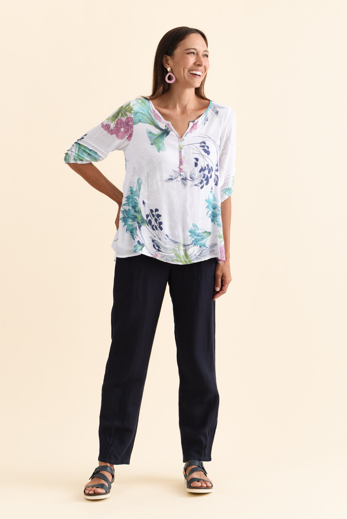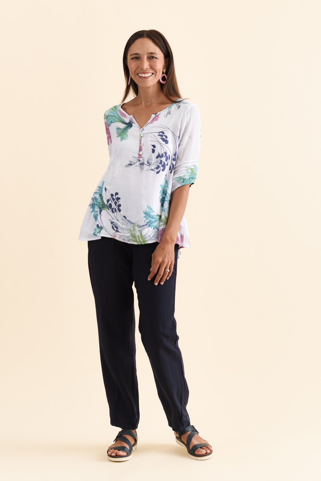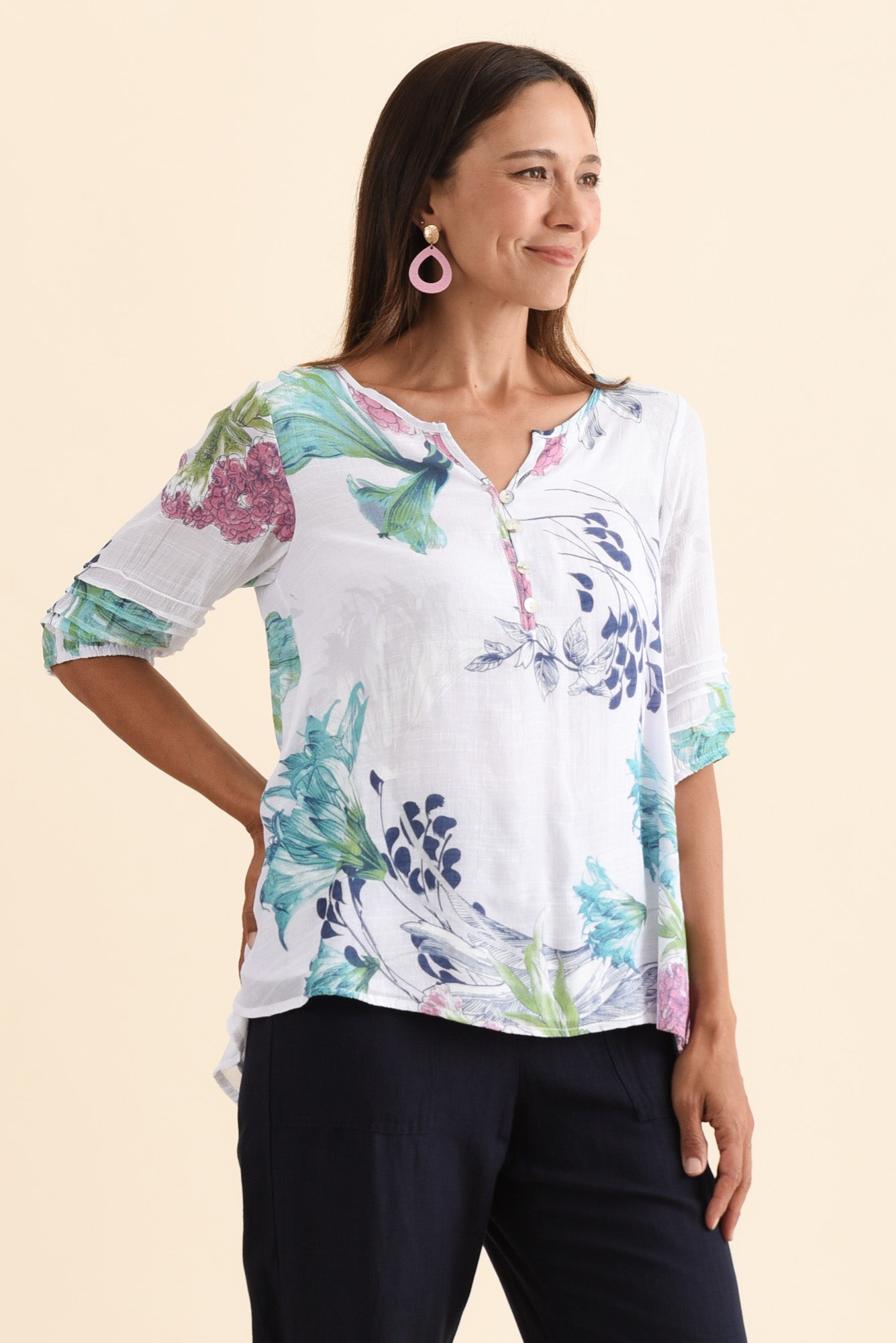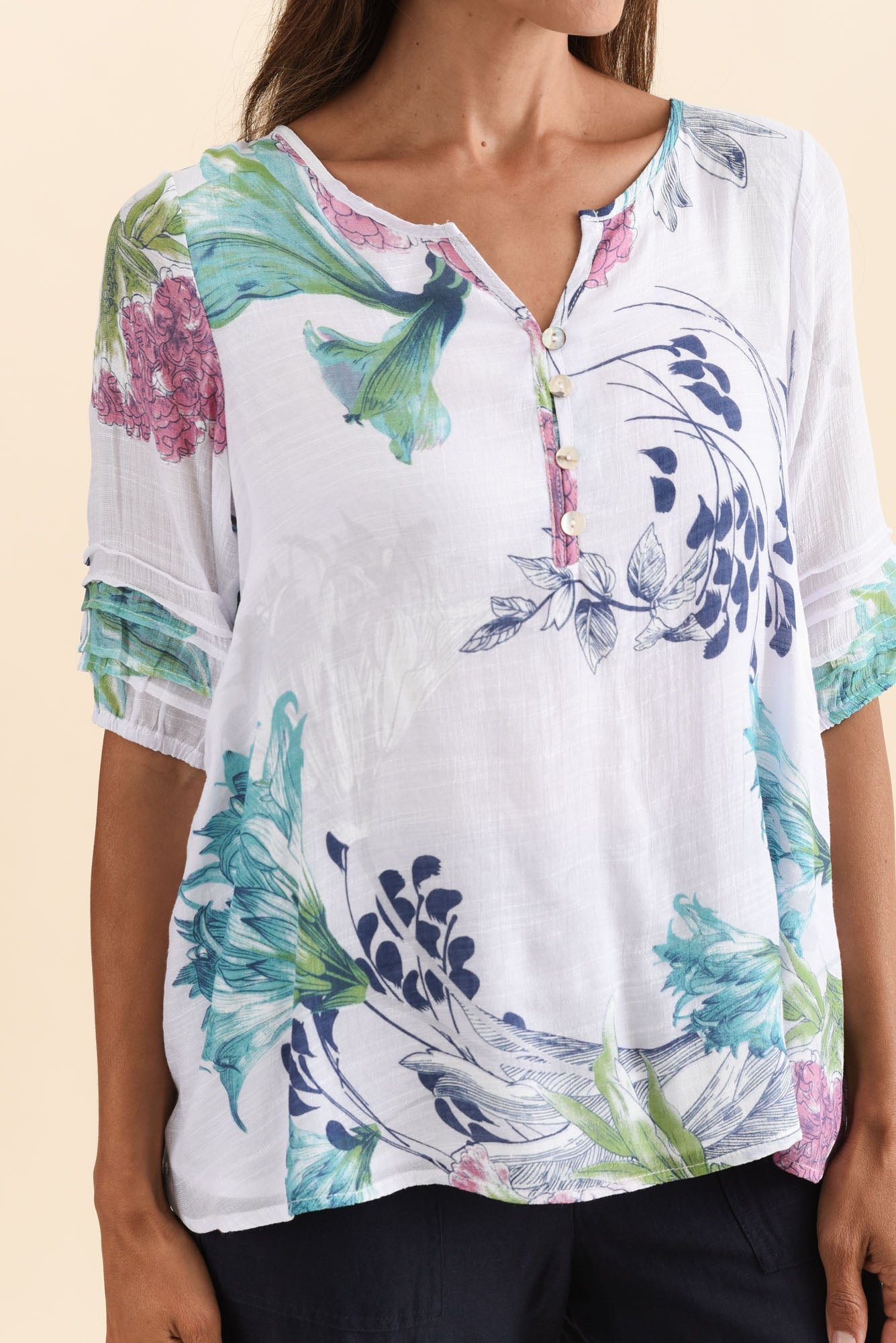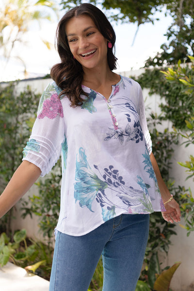 RAMY WHITE FLORAL COTTON BLEND TOP