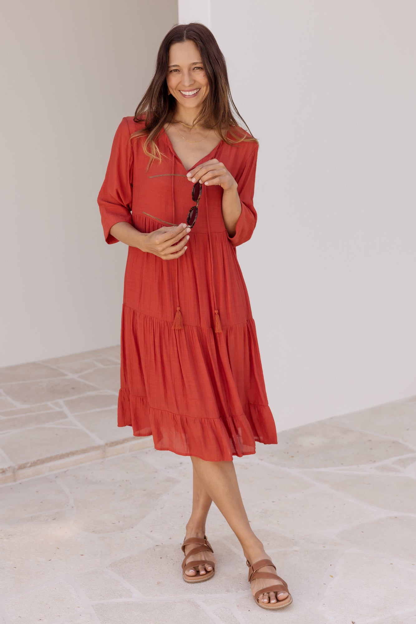Ravina Rust Tier Dress